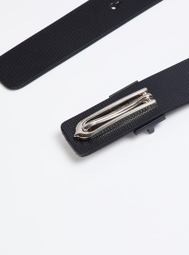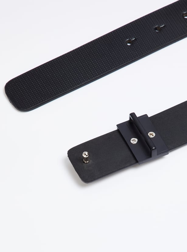 Make your workwear more fashionable with this classic belt featuring a push pin buckle fastening. Its timeless design adds a touch of sophistication, making it an excellent choice for any event.