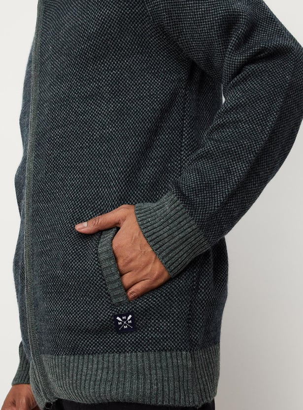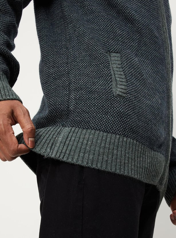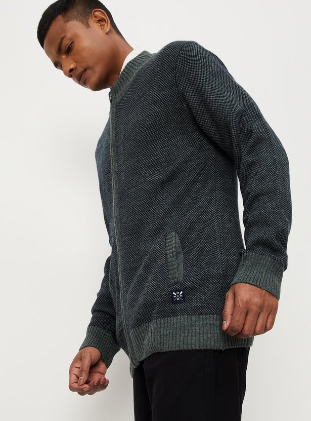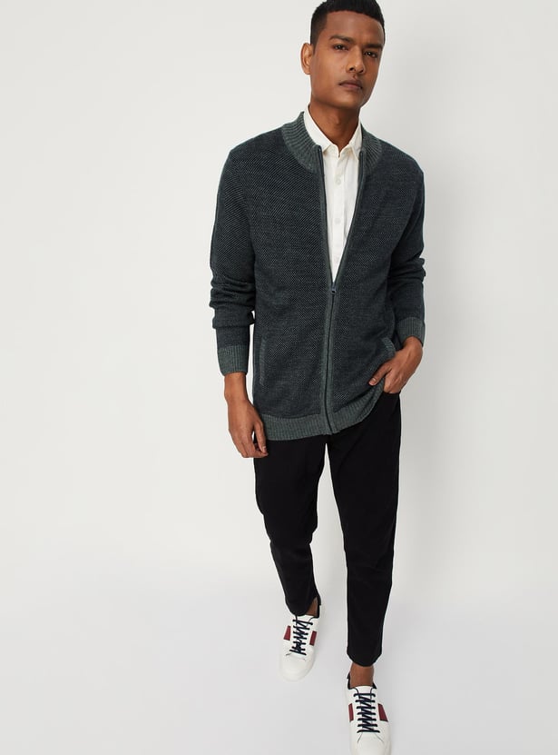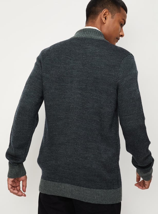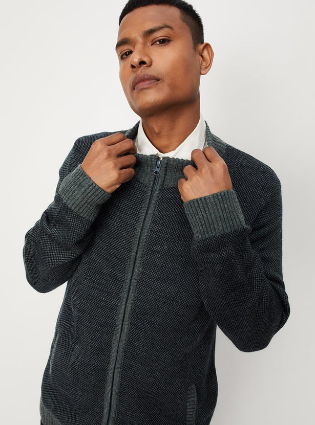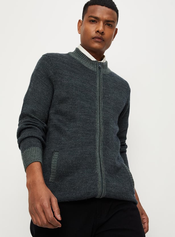 Up your ante this winter with this sweater that is updated with a mock collar, long sleeves, zip front closure, waist pockets and ribbed trim. Layer this sweater over a tee and pair it with trousers and sneakers for a cosy look.