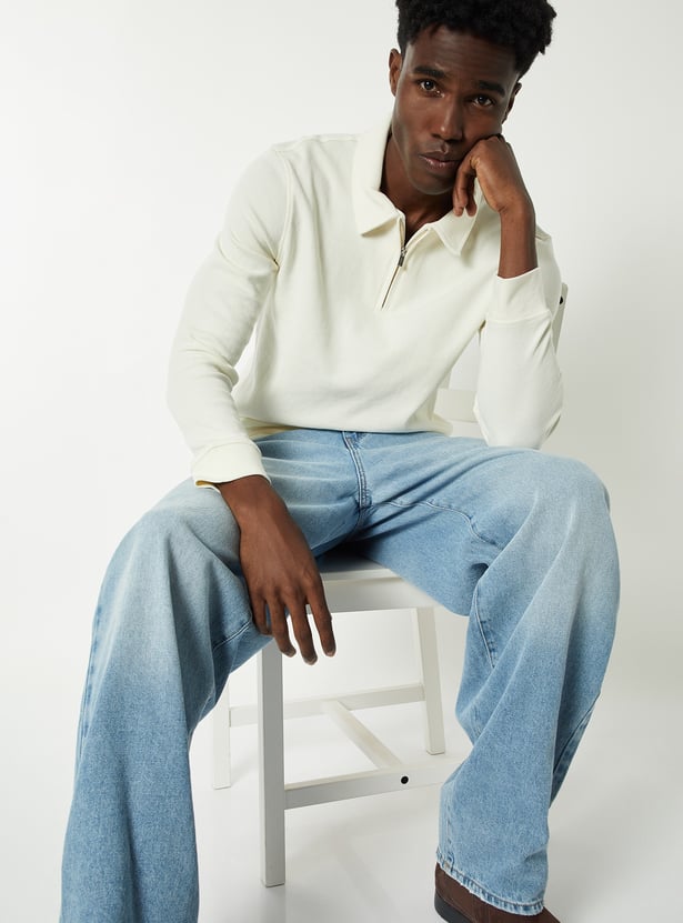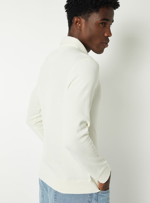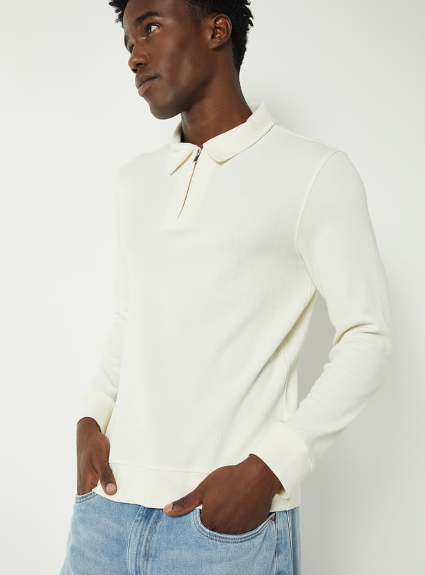 Elevate your casual wardrobe with this textured polo T-shirt, featuring a classic polo collar, zip closure, and full sleeves. The textured fabric adds subtle detail while ensuring comfort and style.