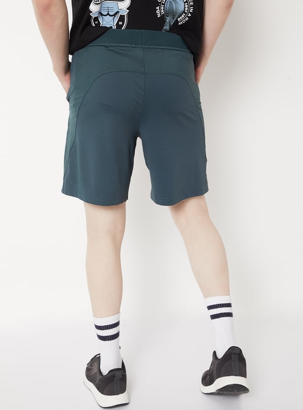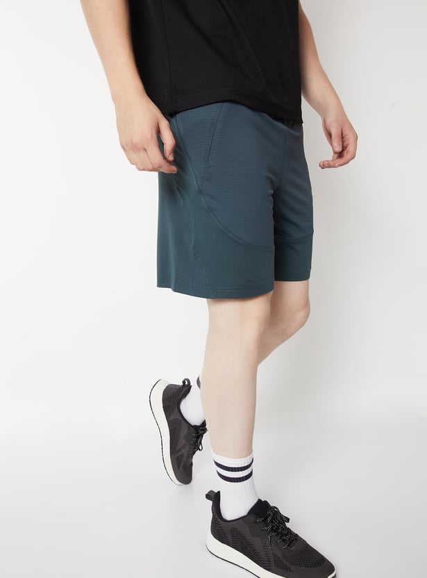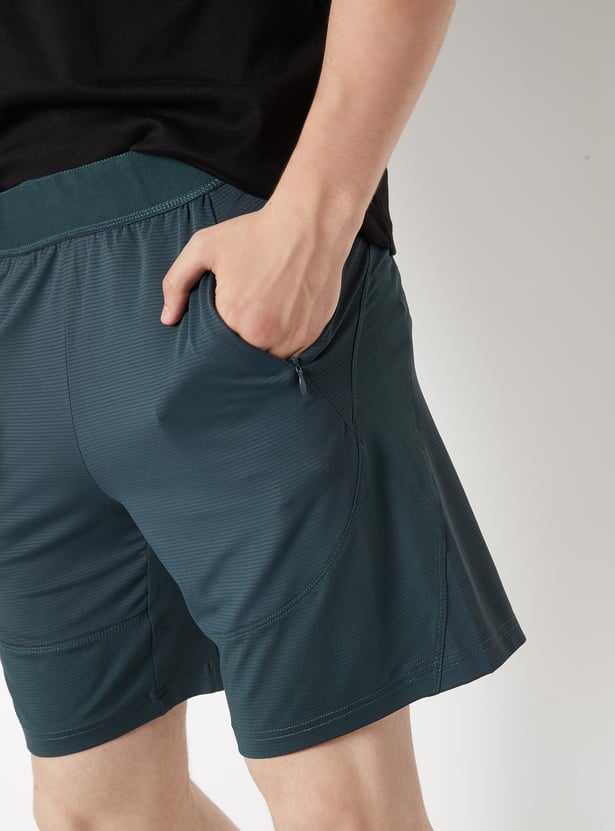 Stay active in these textured sports shorts featuring a mid-rise fit, drawstring closure, and secure zip pockets—designed for both comfort and functionality.