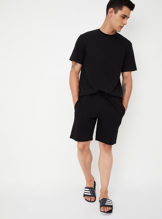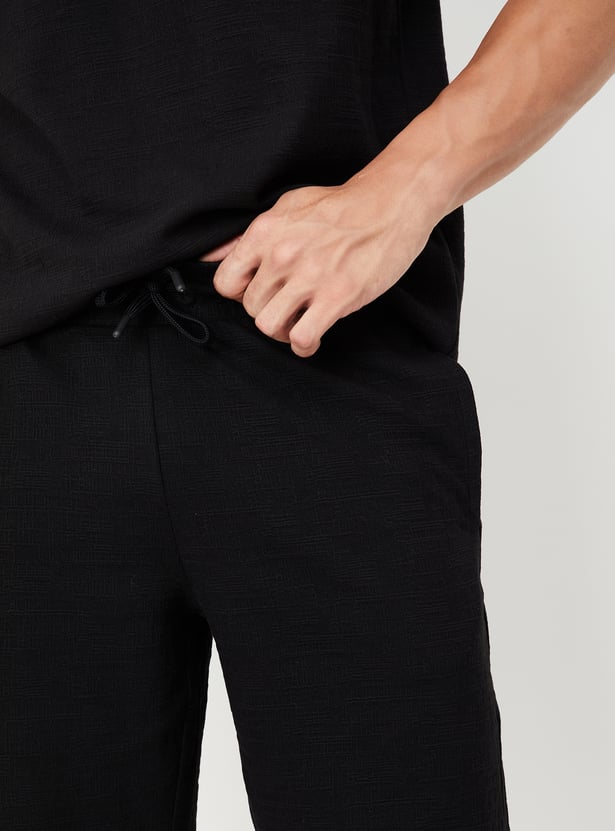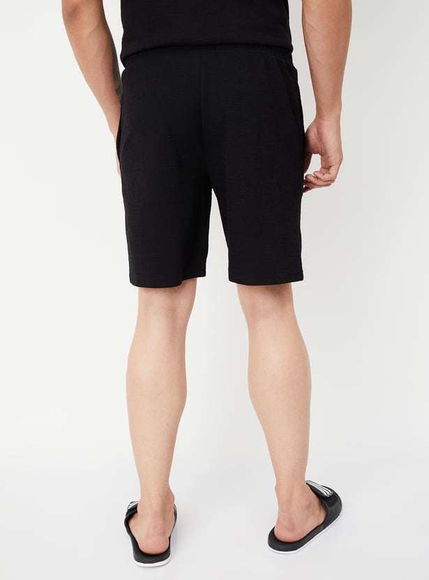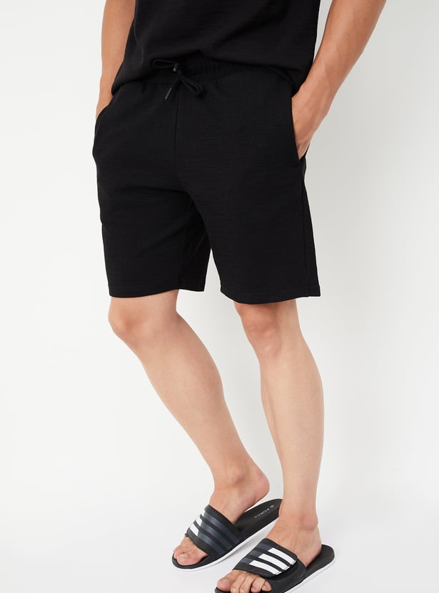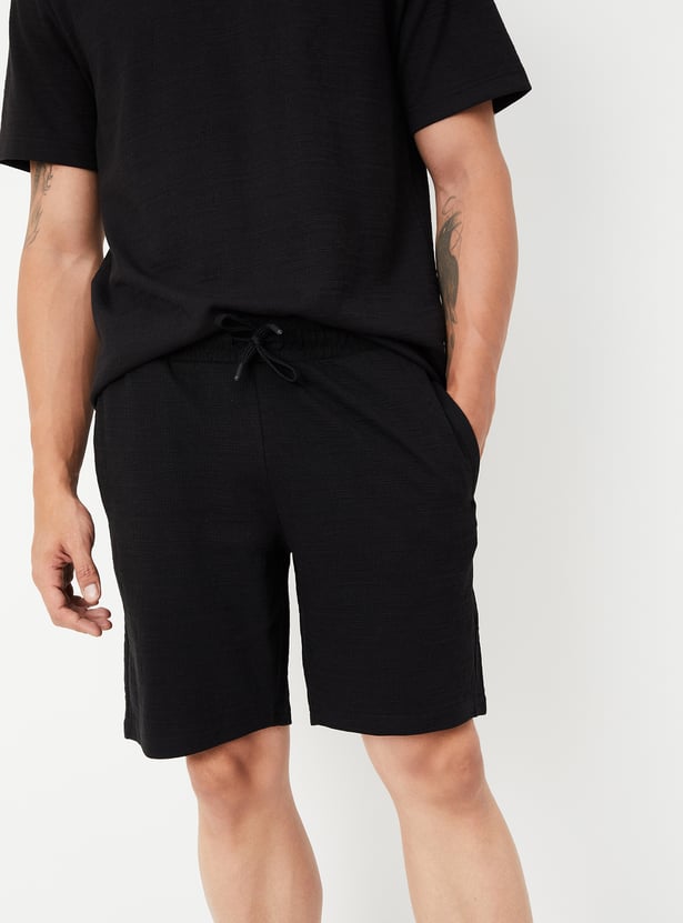 Stay comfortable and stylish with these textured shorts, featuring a drawstring closure and insert pockets. Perfect for casual outings or lounging, they offer a relaxed fit with added convenience.