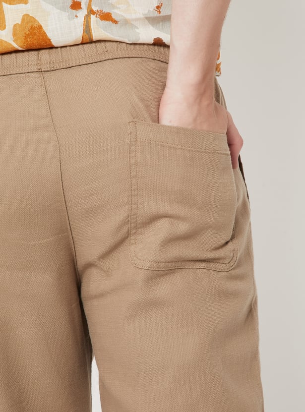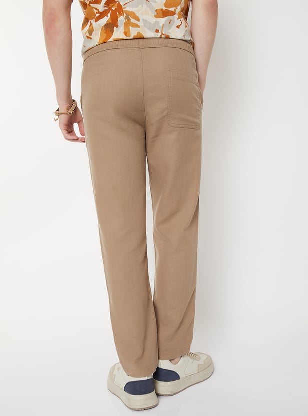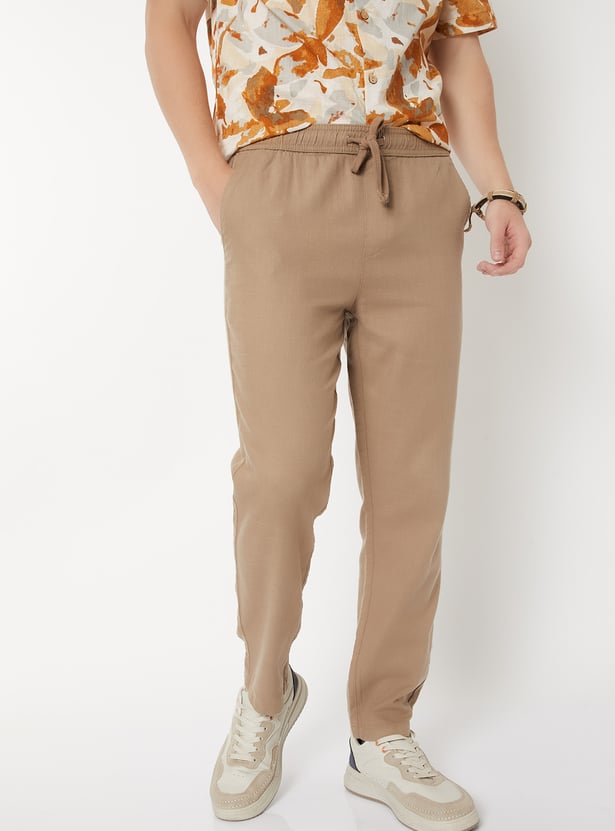 Add effortless style to your wardrobe with these textured slim fit trousers, designed for comfort and ease. Featuring a drawstring closure, and functional pockets, they bring together practicality and sophistication.