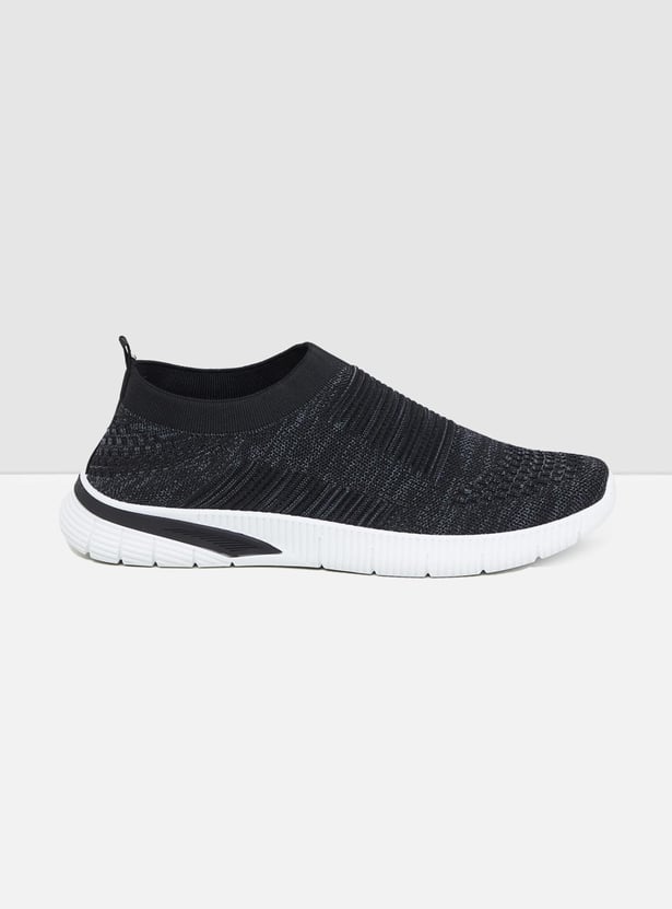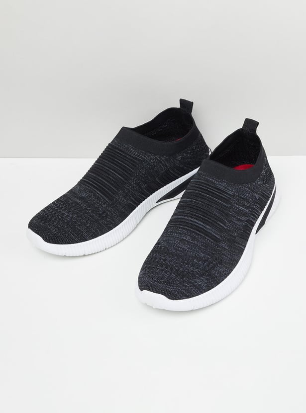 An ideal pick for a casual wardrobe, this pair of slip-on casual shoes are designed with a textured surface and a neat mesh paneled detail.