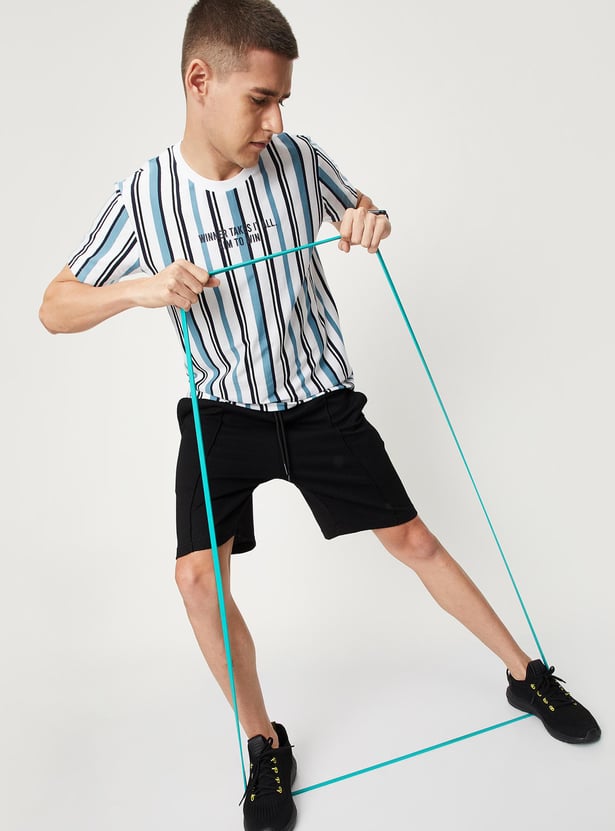 Make a statement at the gym with this athleisure t-shirt that has a crew neckline, striped surface, and half sleeves. Team it up with a pair of shorts and lace-up shoes to make your workout comfortable.