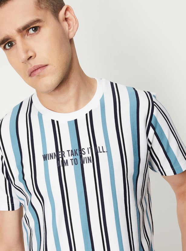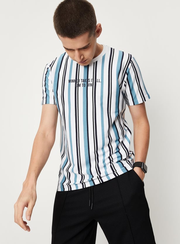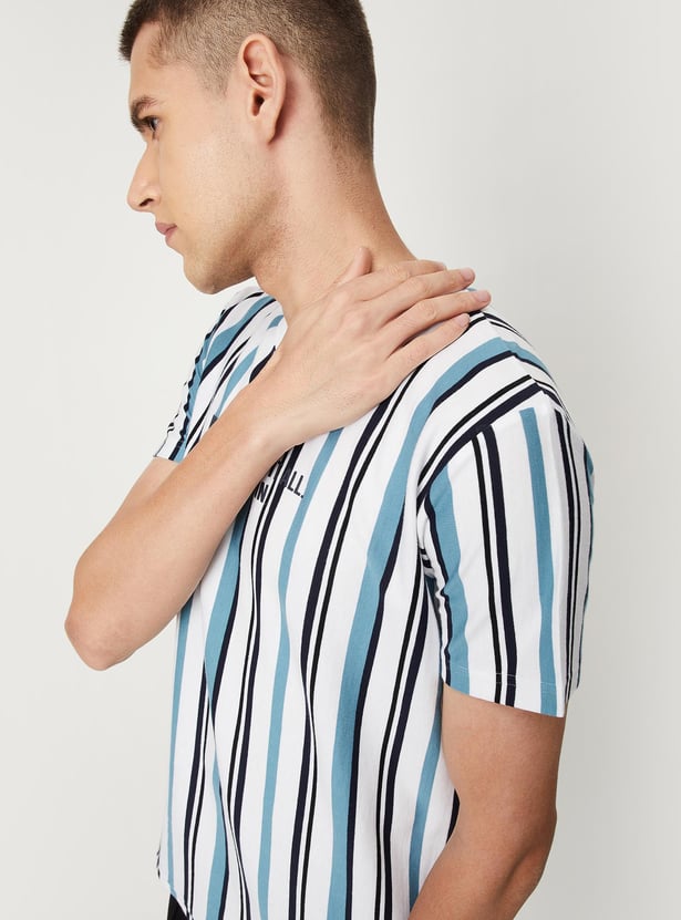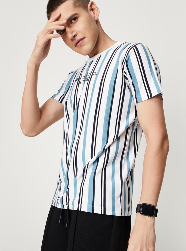 Men Vertical Striped Slim Fit Athleisure T-shirt