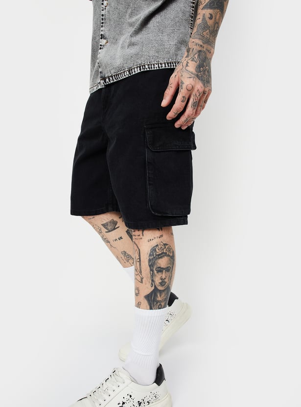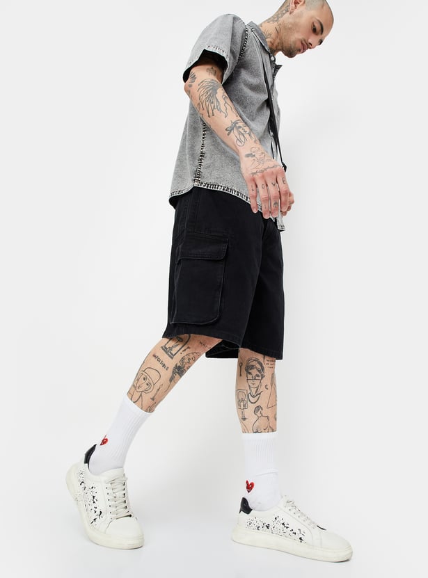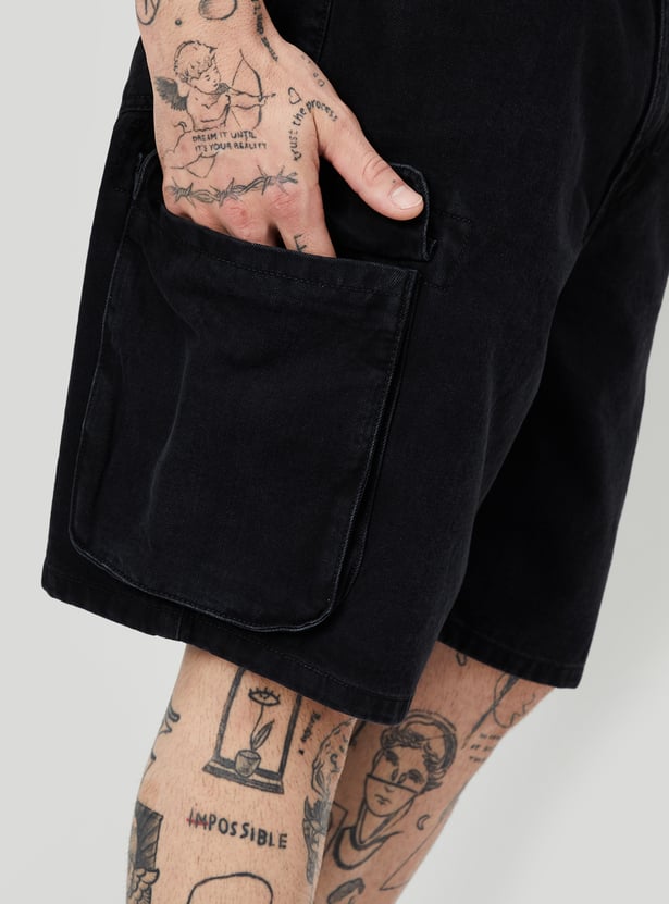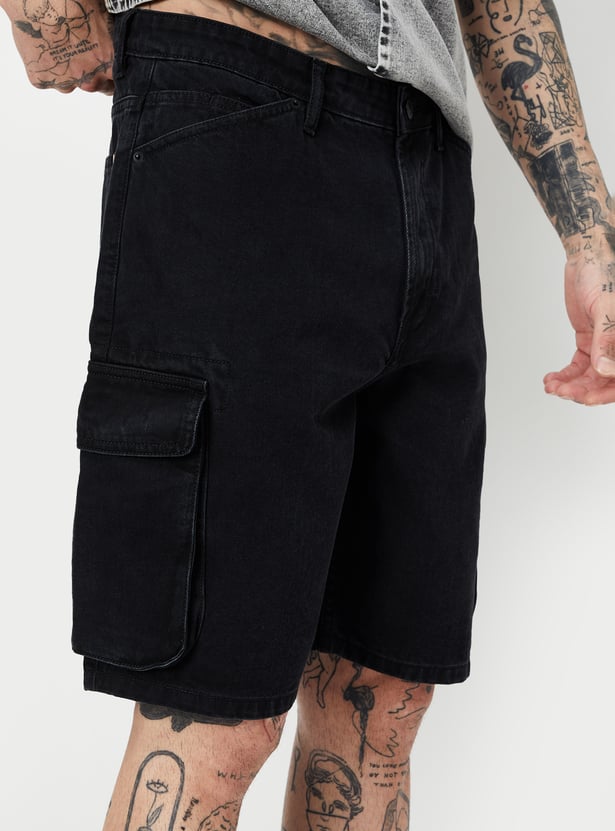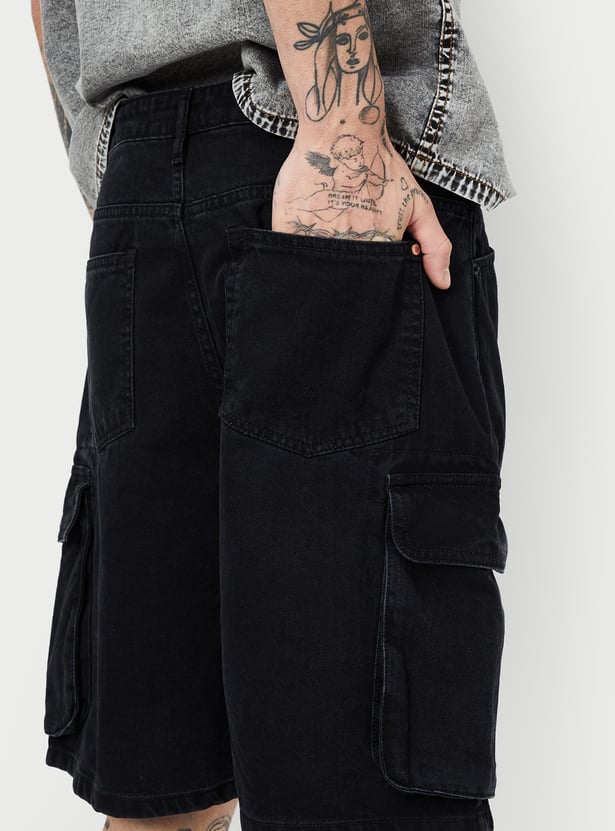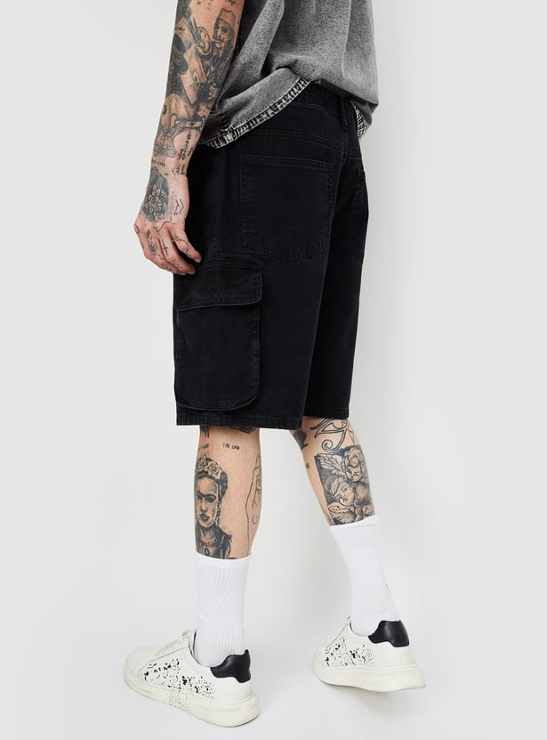 Men Washed Cargo Denim Shorts