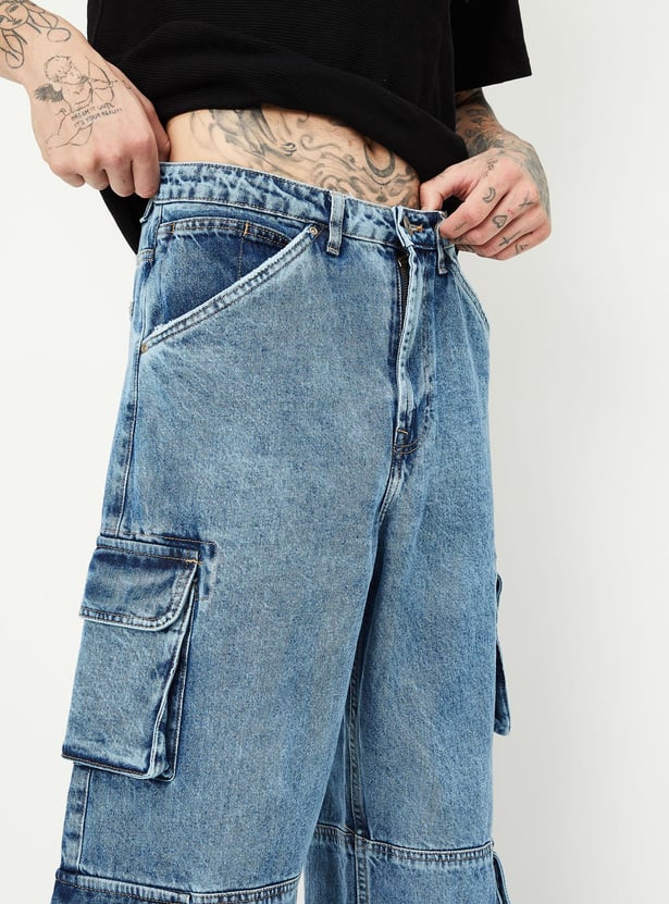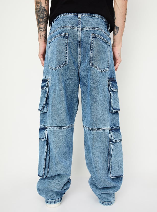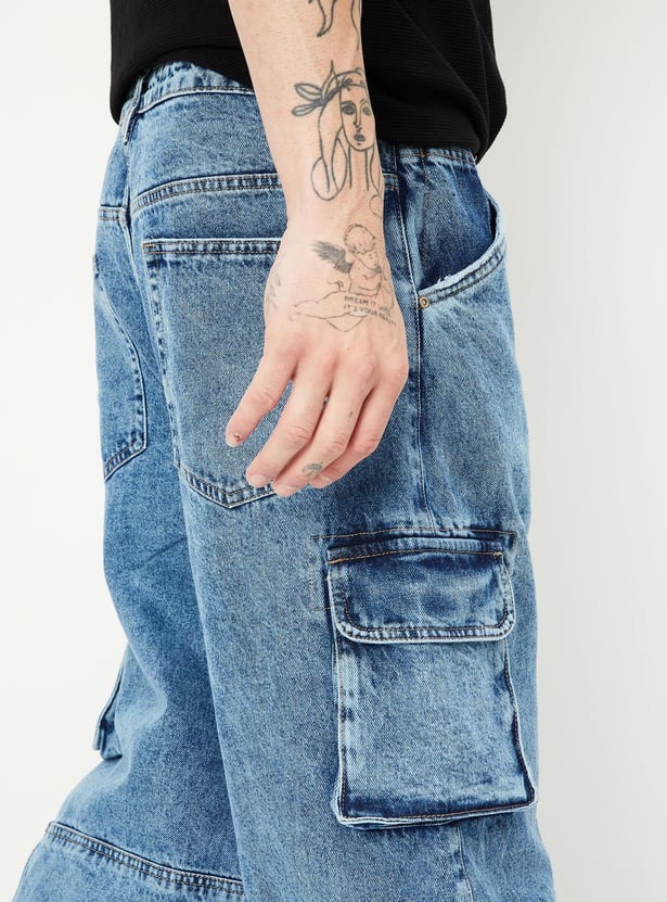 The classic style you love but in a roomy fit. This pair of jeans has 4 pockets plus 4 side cargo pockets for functionality. This solid-tone design is styled with a mid-rise waist with belt loops and a full-length profile.