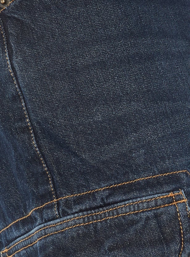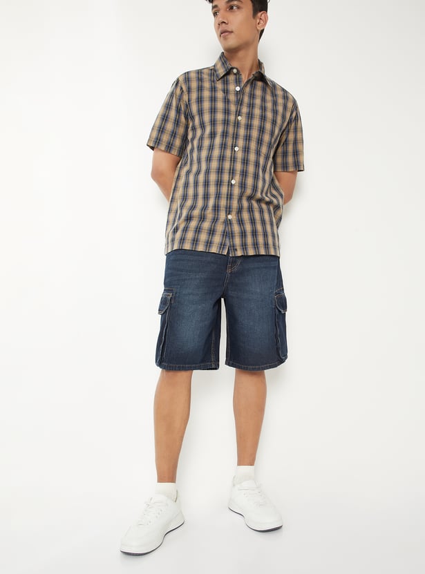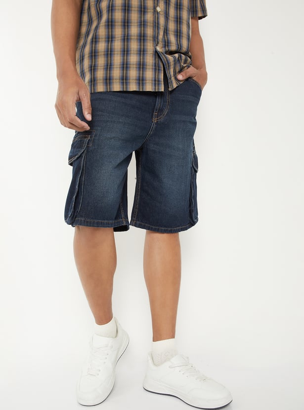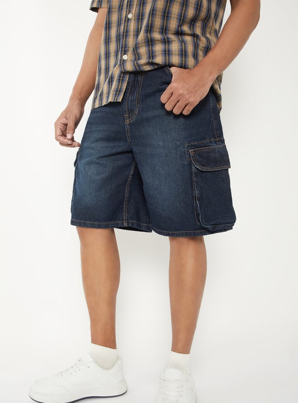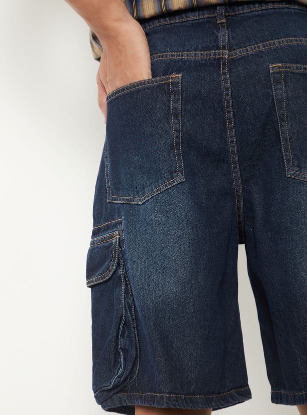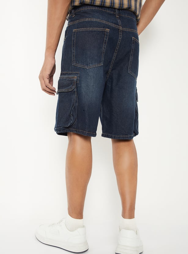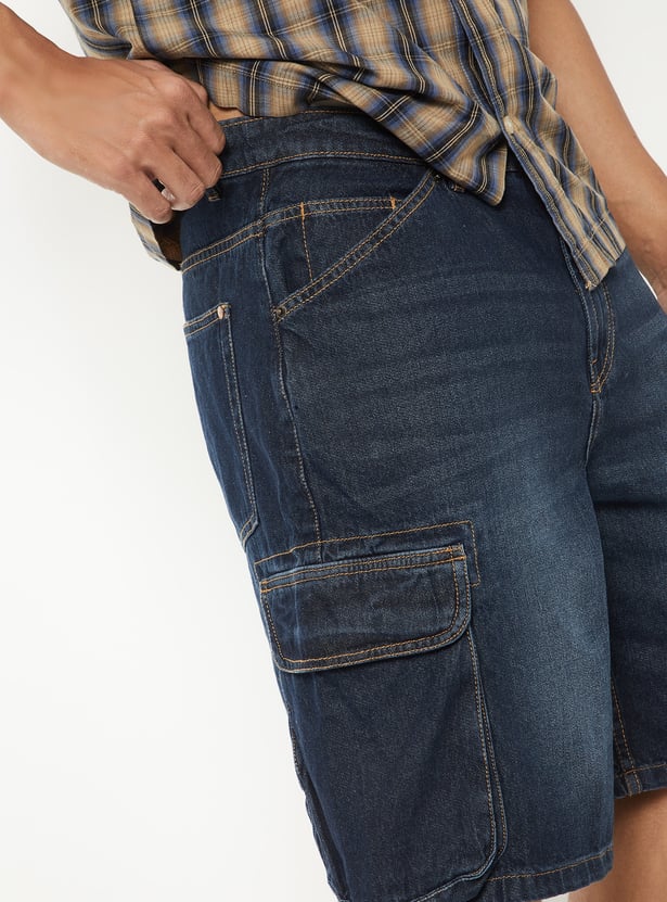 Men Washed Denim Cargo Shorts