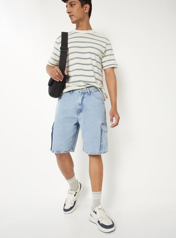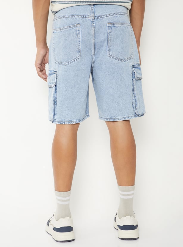 Men Washed Denim Cargo Shorts