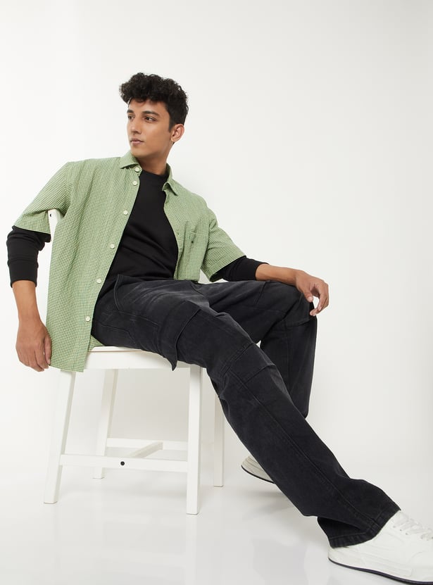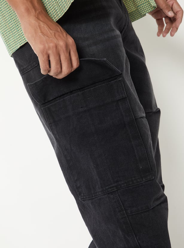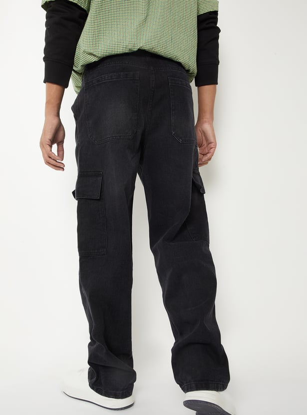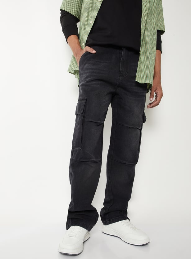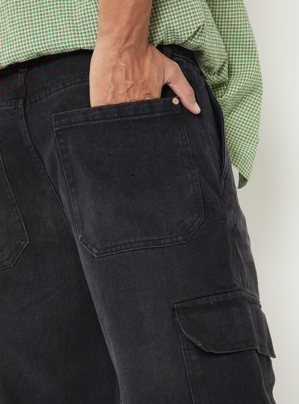 Upgrade your casual wardrobe with these washed loose fit denim cargos, blending utility with style. Featuring a button closure, belt loops, and a mid-rise fit, they’re designed with multiple pockets for functionality while maintaining a relaxed, versatile silhouette.