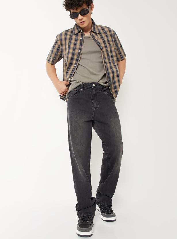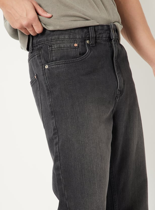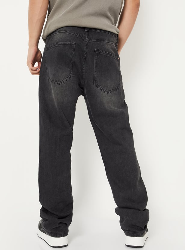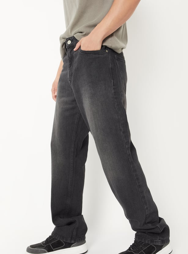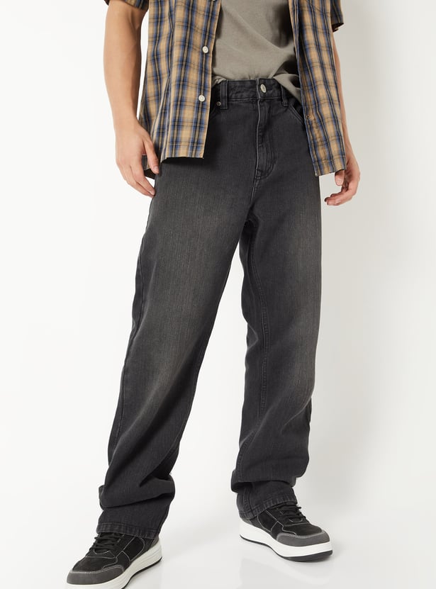 Step into effortless style with these washed, straight-fit jeans, featuring a secure button closure, classic mid-rise waist, and practical belt loops. Designed with functional pockets and a streamlined silhouette, they deliver a modern look.