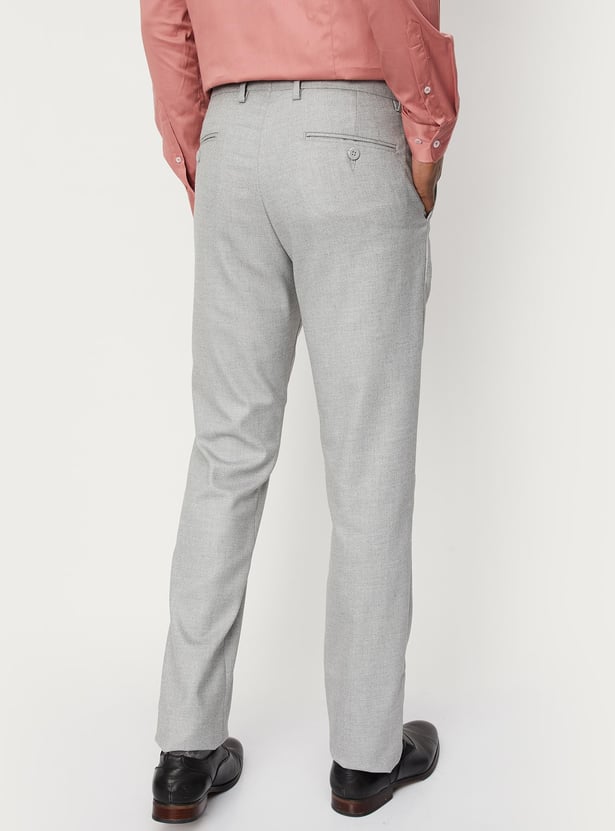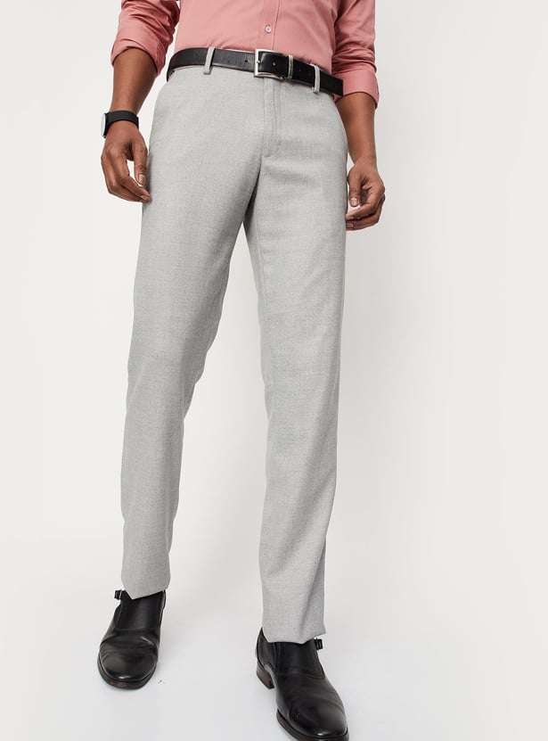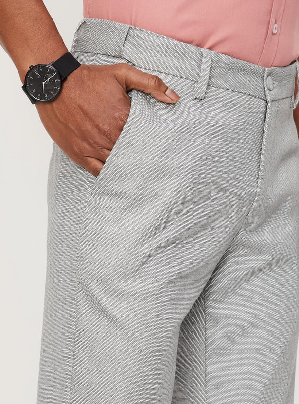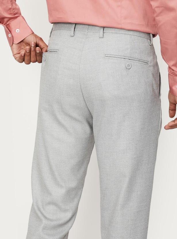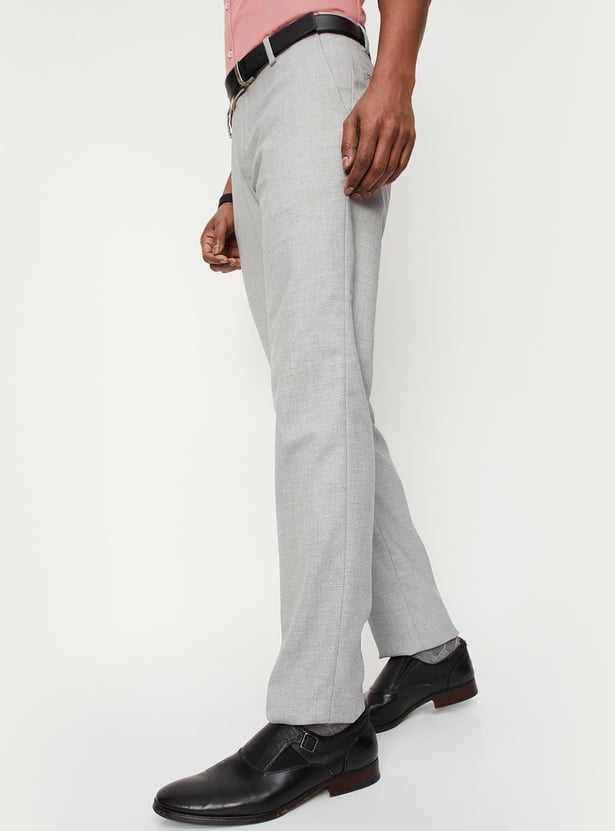 Men Woven Slim Fit Flexi Waist Formal Trousers