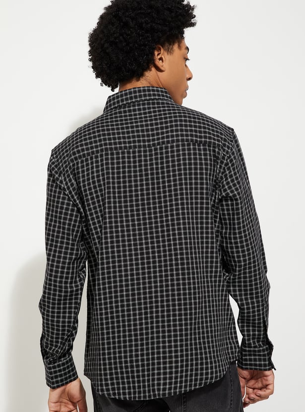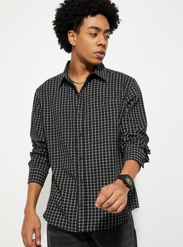 This checked relaxed-fit shirt features a spread collar, full sleeves with button cuffs, and a button placket for a classic, versatile look. The patch pocket adds a touch of practicality, while the relaxed fit ensures all-day comfort.