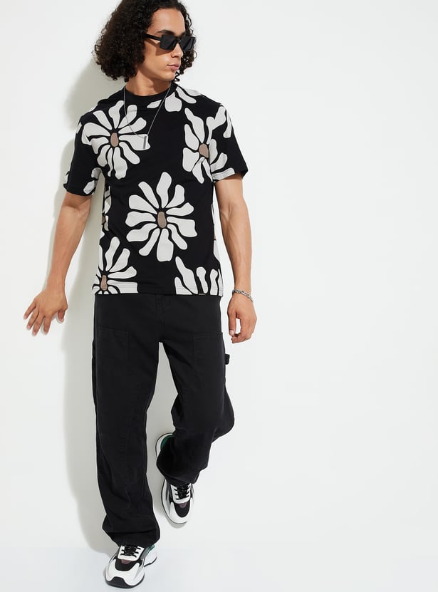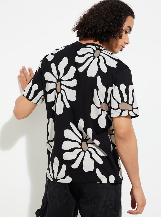 Intensify your style with this floral printed t-shirt. This t-shirt features a crew neck, short sleeves with a straight hem, perfect for a comfort yet cool look.