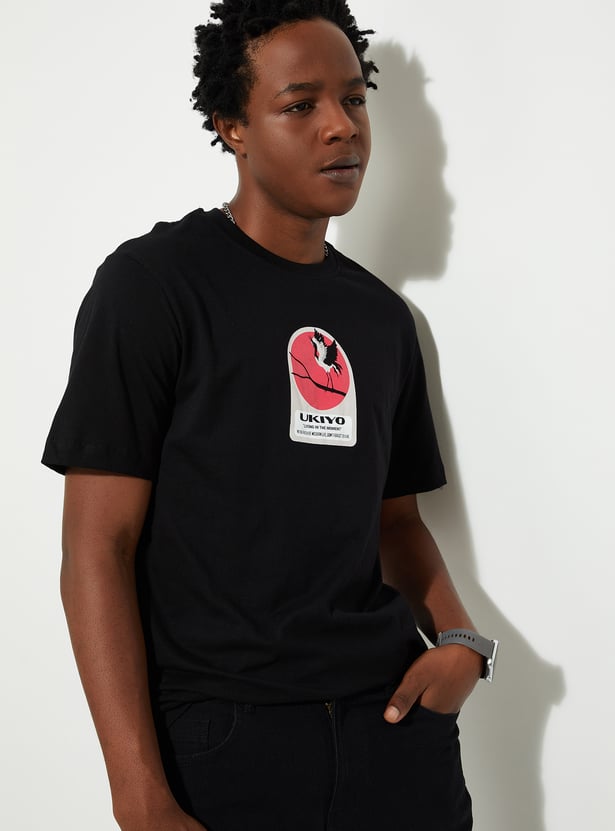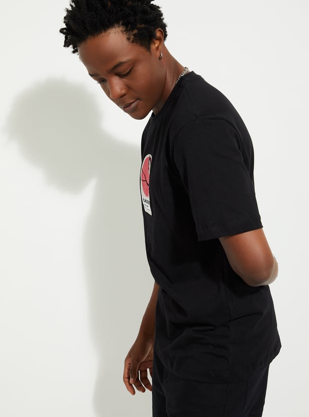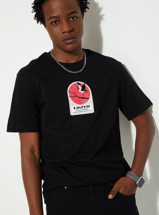 A must-have for your casual wardrobe, this T-shirt features a striking graphic print on the chest. With a crew neck and half sleeves, it provides roomy comfort. Perfect for effortless urban style.
