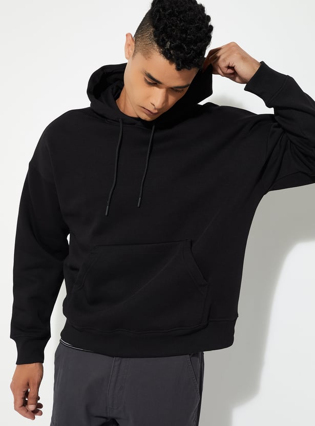 Stay cosy and on-trend with this knit oversized sweatshirt, featuring a hooded neck, full sleeves, and a roomy kangaroo pocket. Perfect for laid-back days and chilly weather.