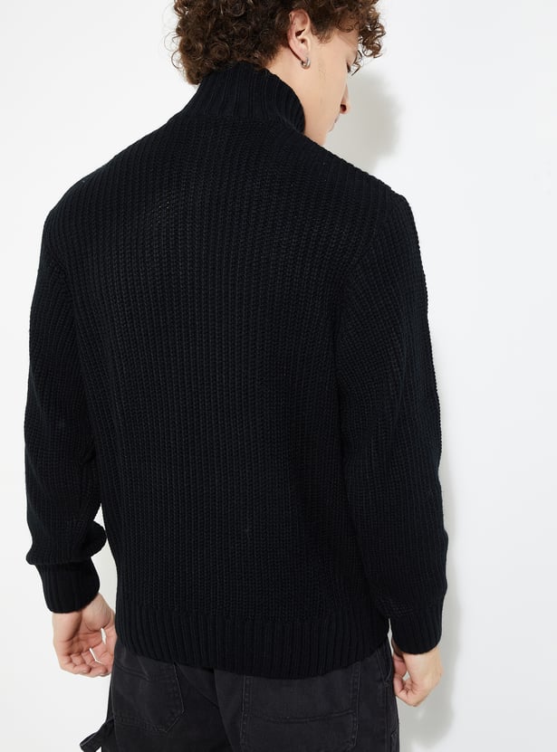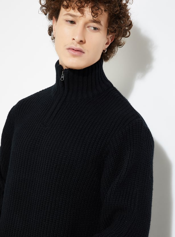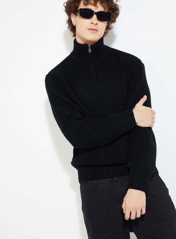 Zip up in style in this sweater. This knit profile features a stylish polo neck and a convenient zip front, adding a modern twist to a classic design. The lightweight knit offers comfort while keeping your look sharp and polished.