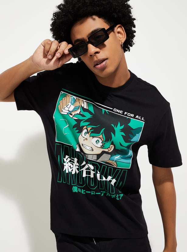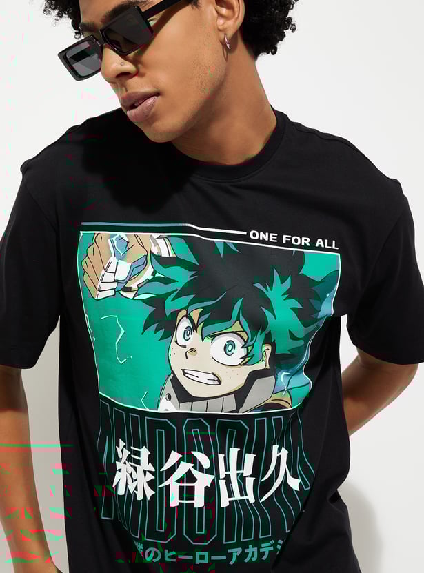 This My Hero Academia printed t-shirt for men features a bold graphic design, a classic crew neck, and half sleeves for a relaxed, comfortable fit. Show off your love for the anime with a statement piece that’s perfect for everyday wear.