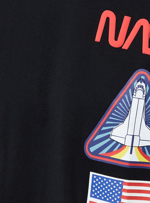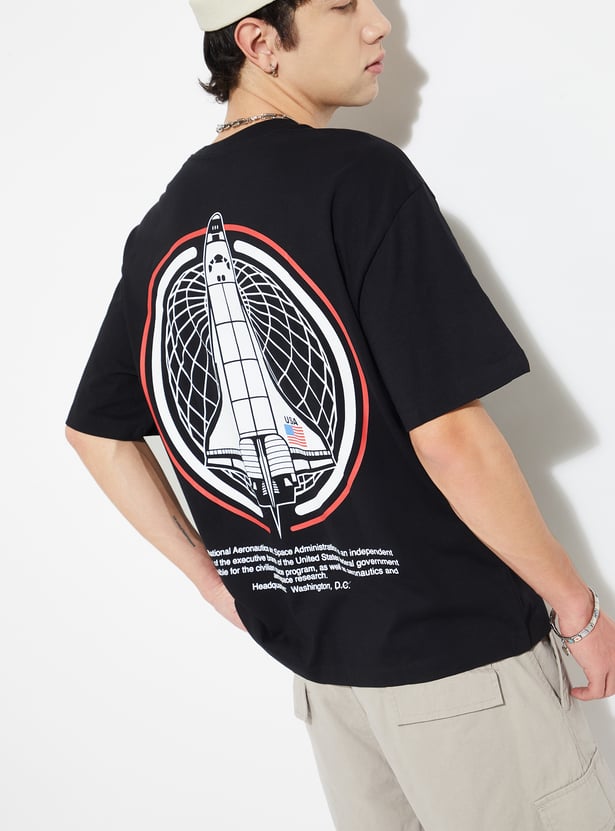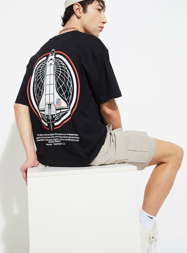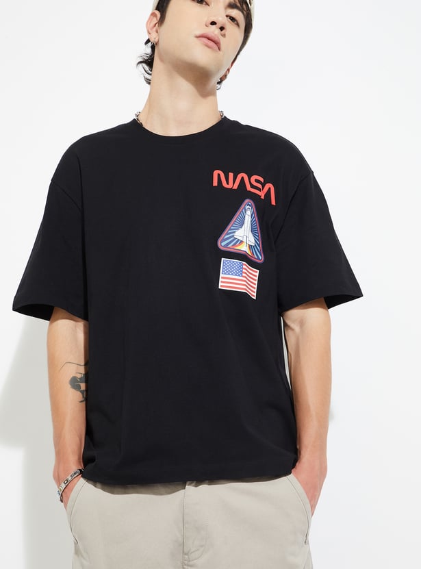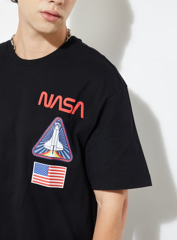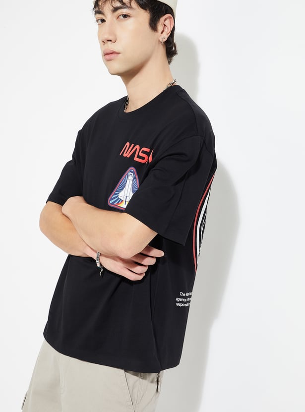 Elevate your casual wardrobe with this NASA print oversized T-shirt, featuring a classic crew neck and half sleeves for everyday comfort and style. The soft fabric ensures ease of movement, making it a go-to for daily wear