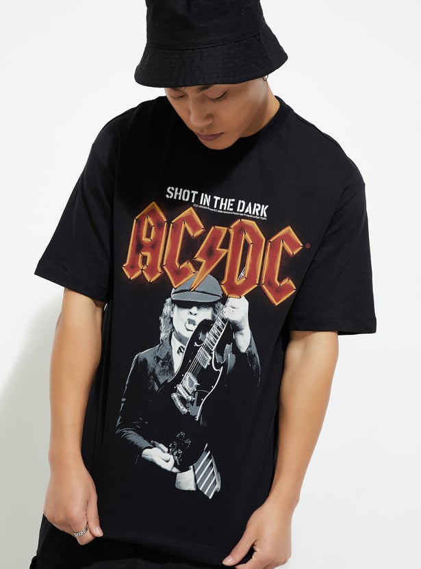 Amp up your street style with this electrifying AC/DC-printed T-shirt, infusing your look with an urban edge. Boasting a classic crew neck, half sleeves, and an oversized fit for all-day comfort, this tee is perfect for channelling your inner rockstar while keeping it effortlessly cool.