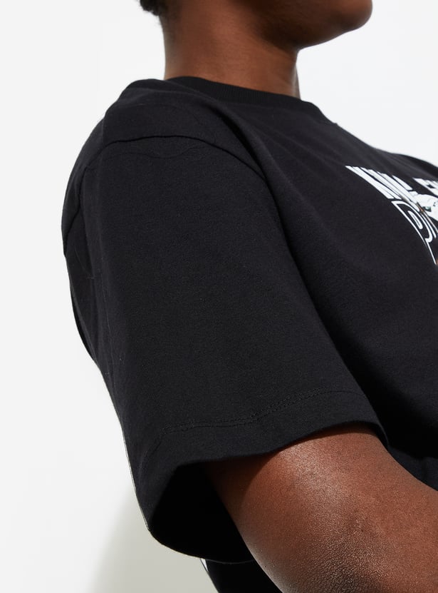 Get ready for an elevated street-style experience. With this Kung Fu Panda printed T-shirt, you'll effortlessly add urban flair to your look. Featuring a crew neck, short sleeves, and an oversized profile for roomy comfort, you'll feel like a martial arts master on the city streets.