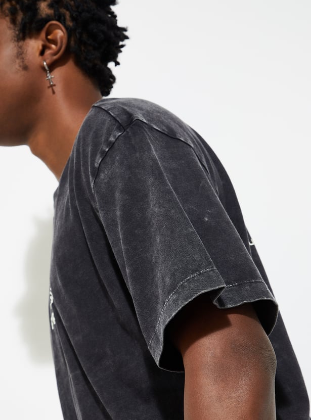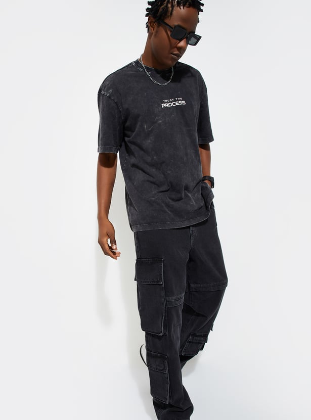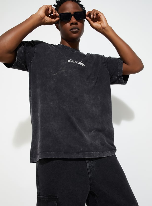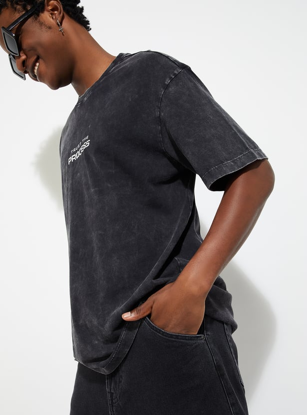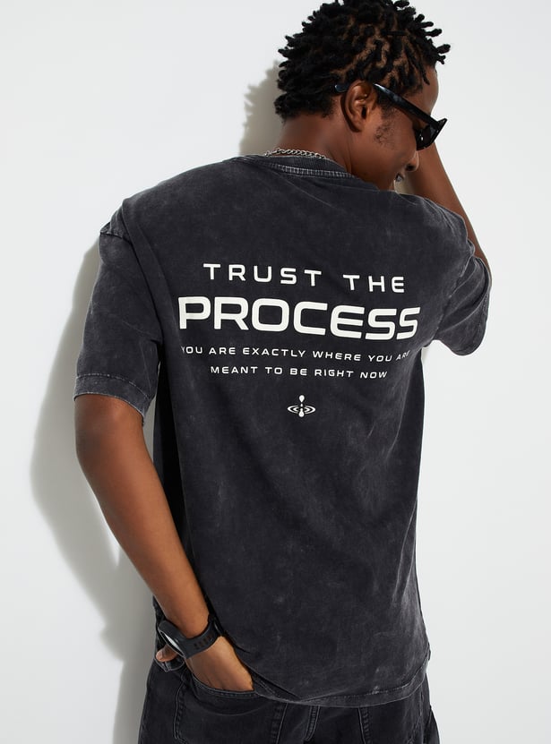 Step up your fashion game with this lava dyed T-shirt, a wardrobe staple for men. Featuring short sleeves, a crew neck, and typographic prints on the back, its oversized profile ensures roomy comfort and effortless style.
