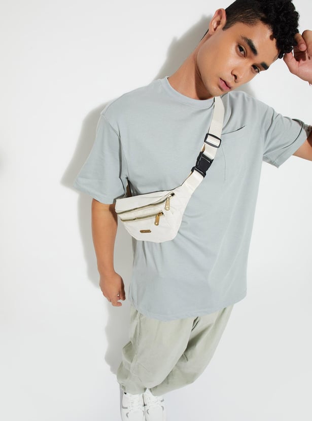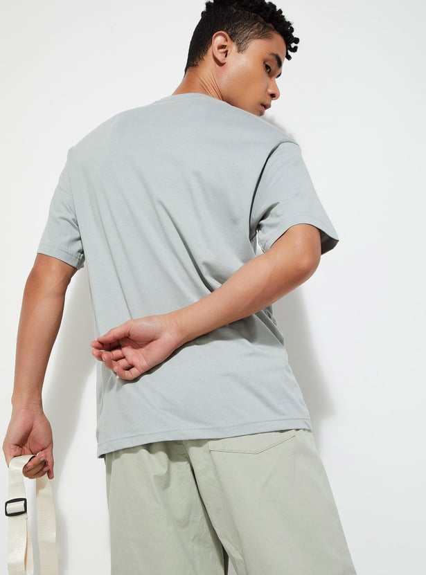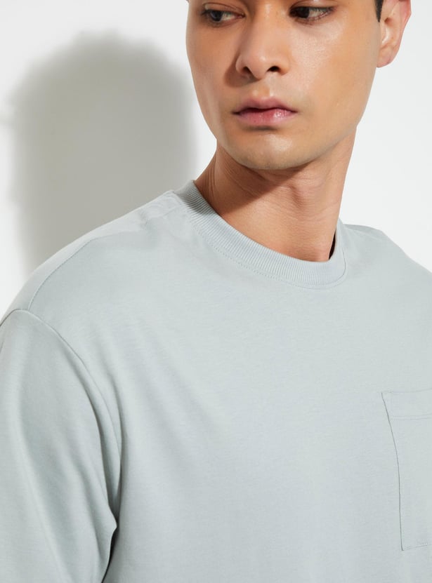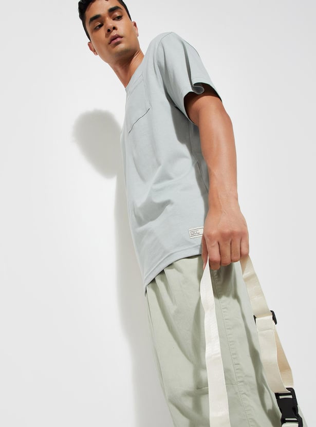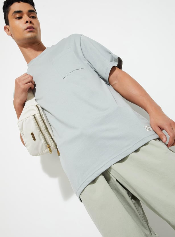Elevate your urban wardrobe with this solid-finish T-shirt. Featuring a classic crew neck, short sleeves, a patch pocket, and an oversized profile, it adds a touch of urban edge to your casual style.
