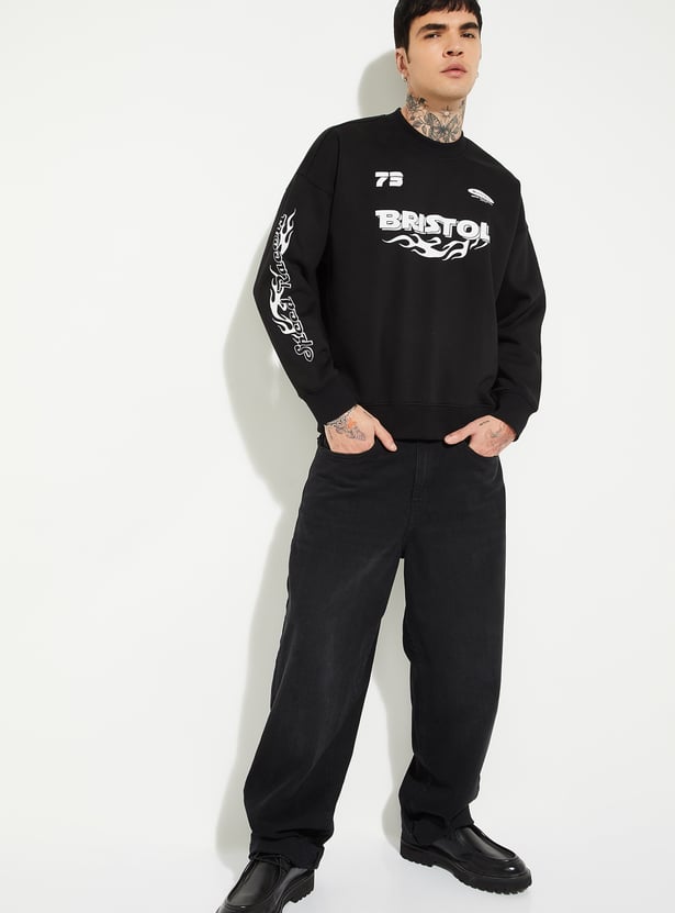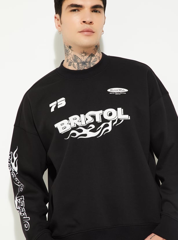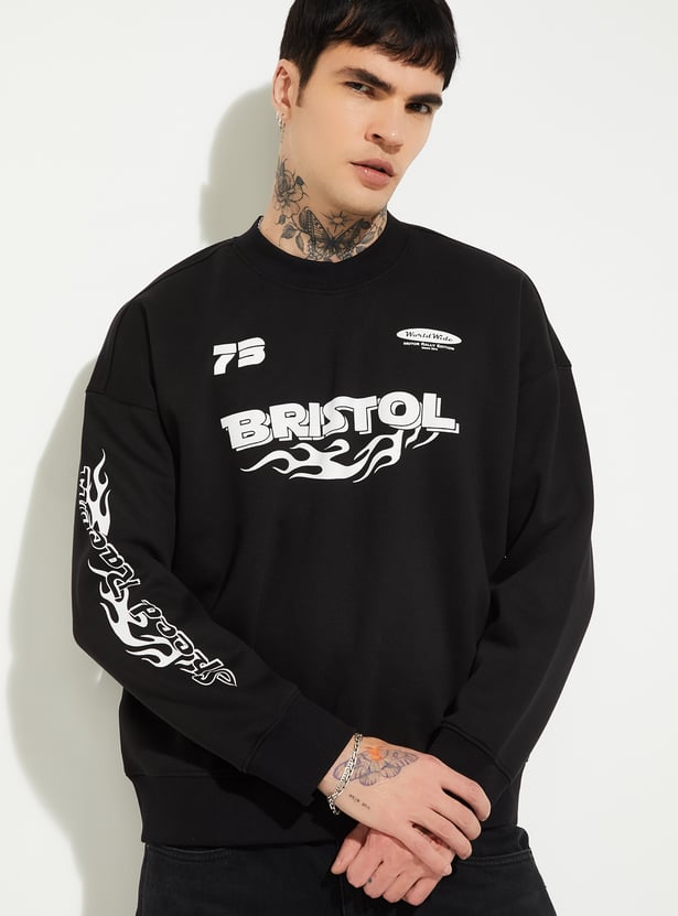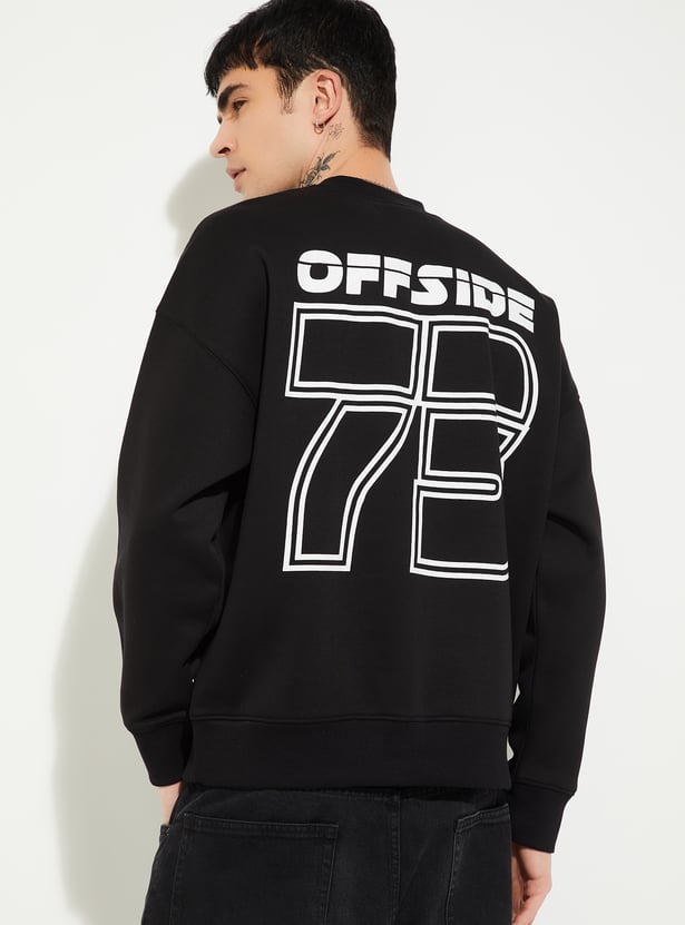 Stay cozy and stylish with this printed oversized sweatshirt. Featuring a classic crew neck and full sleeves, it offers a relaxed fit for all-day comfort. The bold print at back adds personality, making it a standout piece in your casual wardrobe.