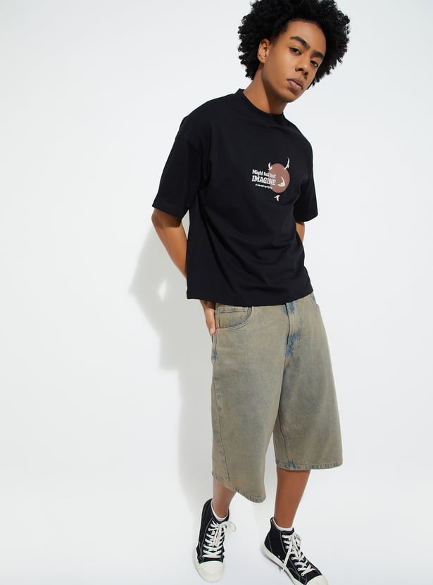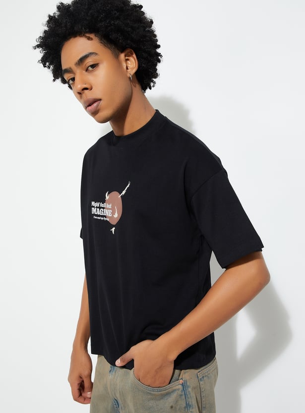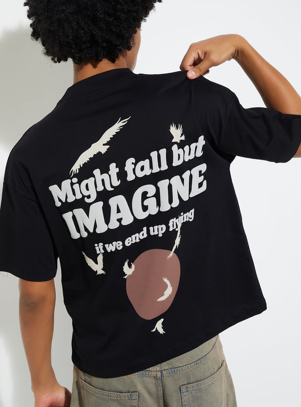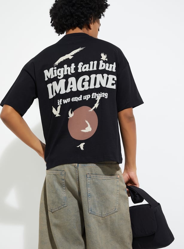 Make a statement with this back printed T-shirt, designed to add a fun twist to your casual wardrobe. Featuring a classic crew neck and half sleeves, it offers both comfort and style.