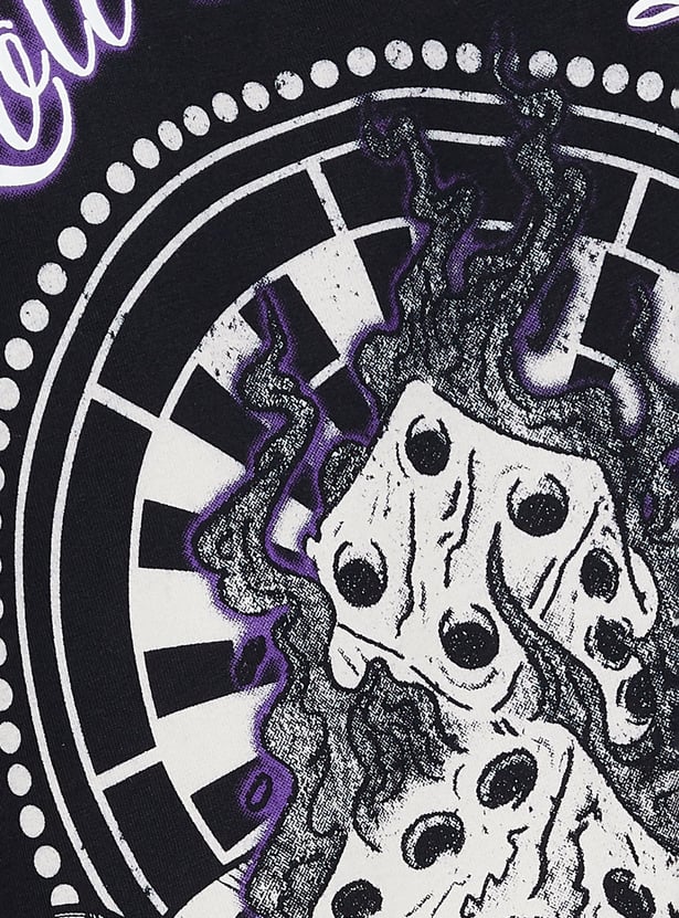 This back printed oversized T-shirt is the perfect blend of comfort and style. Featuring a crew neck, half sleeves, and a straight hem, it offers a relaxed fit for everyday wear.