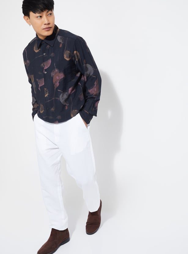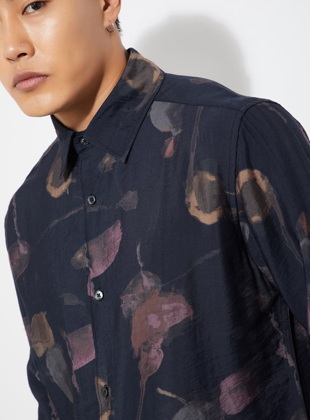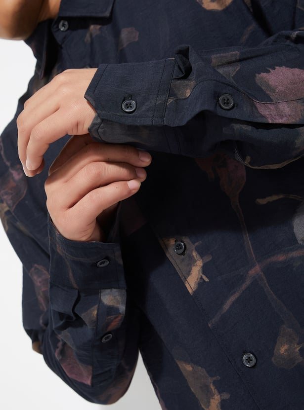 Refresh your wardrobe with this printed regular fit shirt, featuring a spread collar, button placket, and full sleeves with button cuffs for a polished finish.