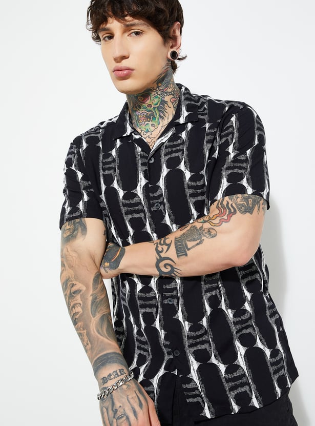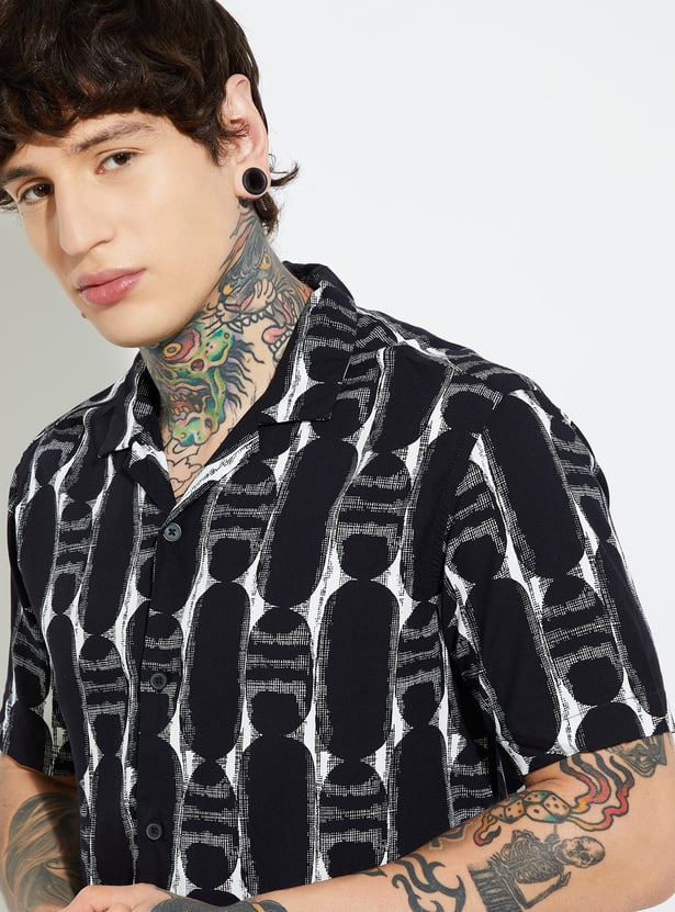 Add a splash of style to your wardrobe with this printed regular fit shirt. Designed with a resort collar, button placket, and half sleeves, it’s perfect for warm-weather days and relaxed outings.
