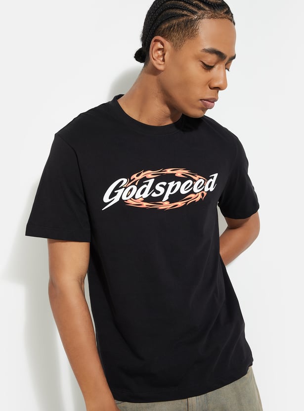 This printed T-shirt features a classic crew neck and half sleeves for a comfy, relaxed fit. The vibrant print adds a fun and stylish touch, making it perfect for casual days or adding a pop of personality to your wardrobe!