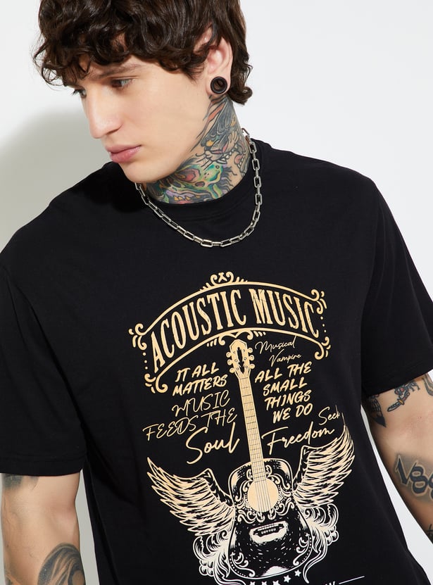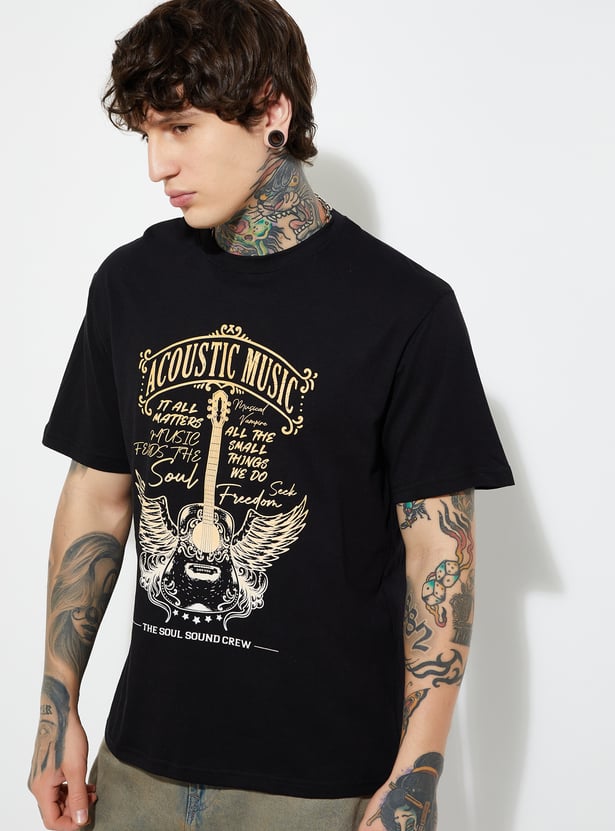 Make a casual statement with this printed T-shirt, featuring a classic crew neck and half sleeves for a relaxed, laid-back fit. Perfect for all-day comfort with a bold touch.
