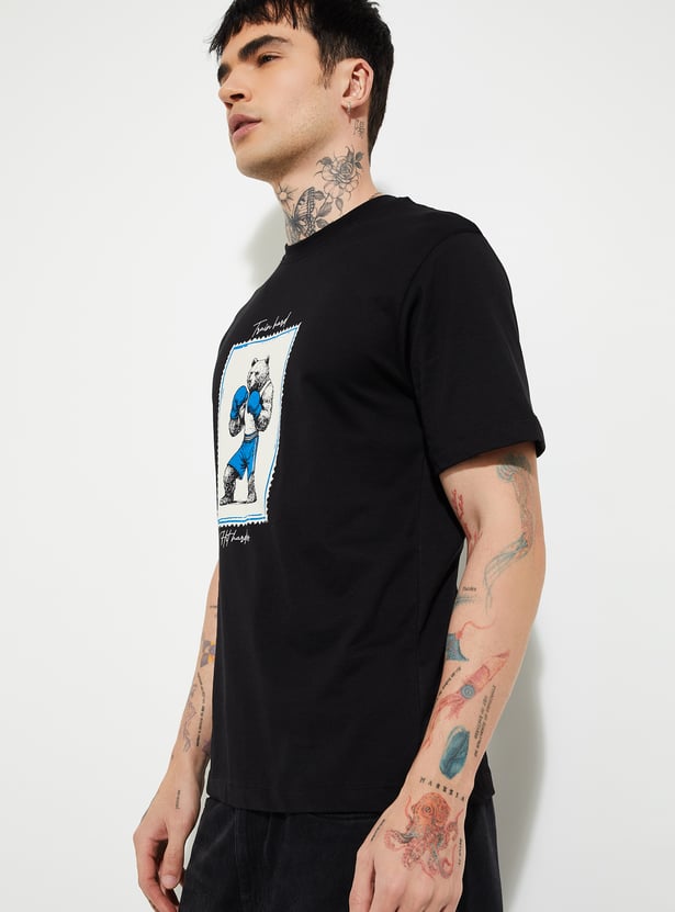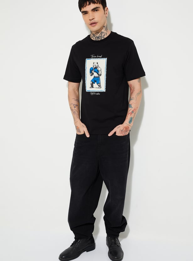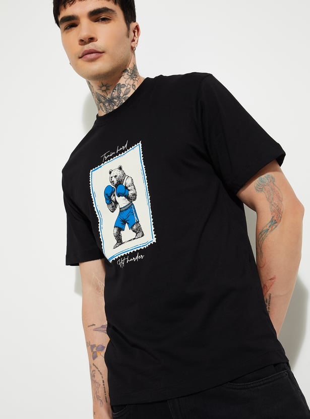 Add a pop of personality to your everyday look with this printed T-shirt. Featuring a bold graphic print, classic crew neck, and half sleeves, it’s designed for effortless style and all-day comfort.