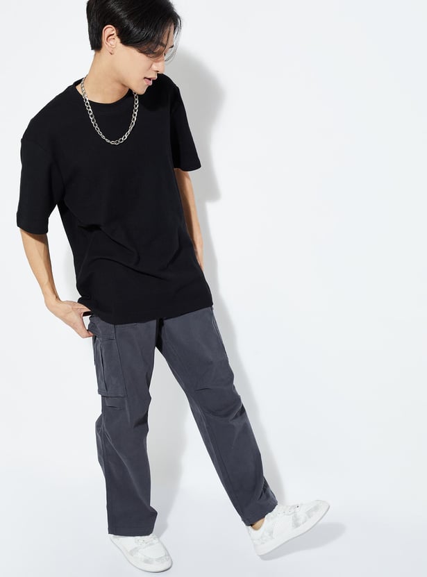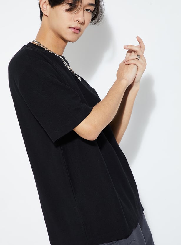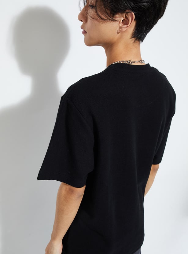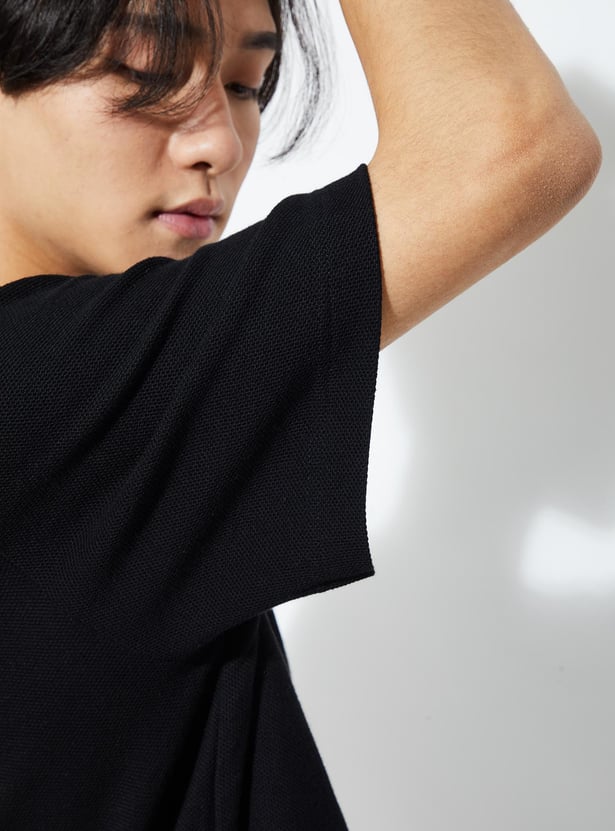 Upgrade your casual style with this T-shirt. It features a textured knit finish. This tee is designed with a crew neck and short sleeves.