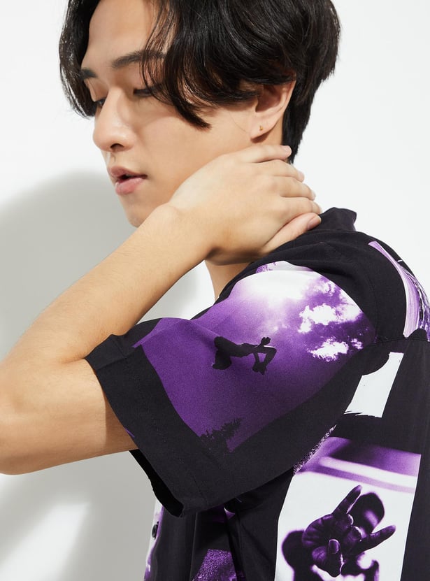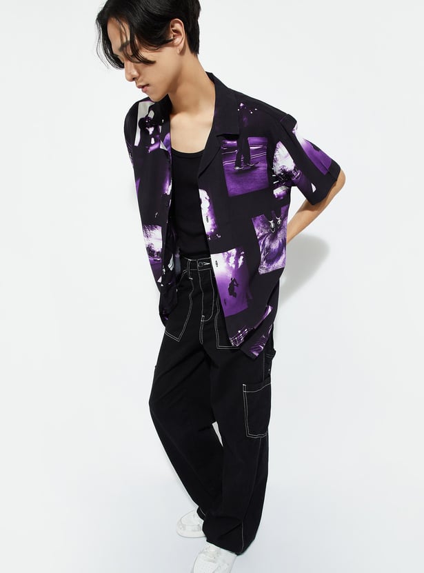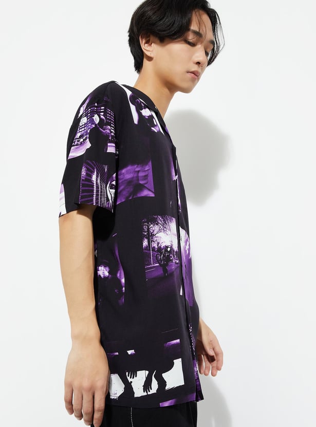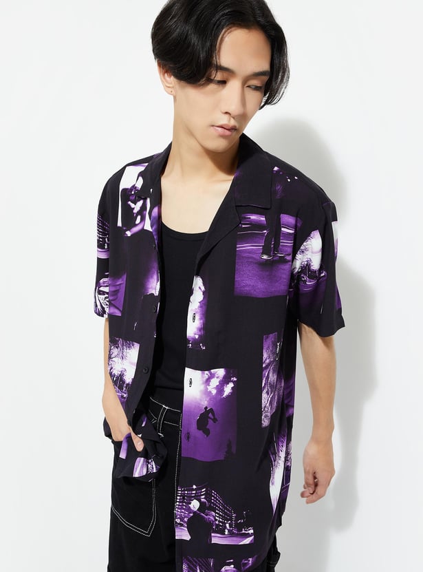 Make a bold statement in this trendy casual shirt with a regular-fit profile. The bold prints, resort collar, and short sleeves create a modern and stylish look.
