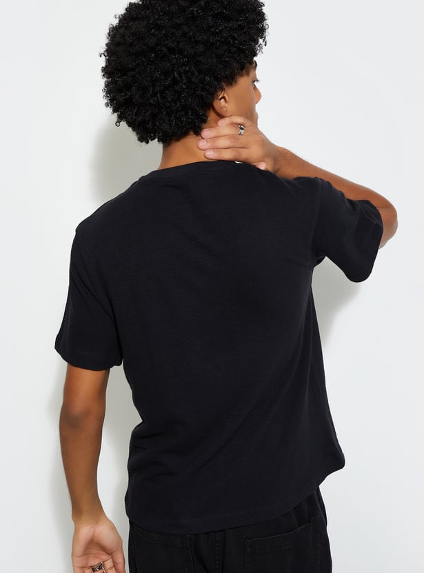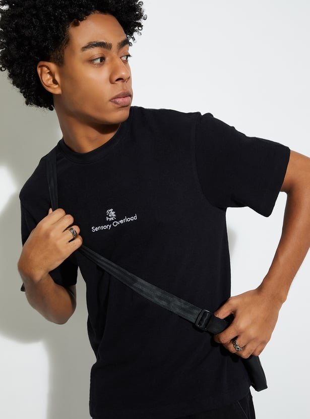 As versatile as your style, this t-shirt features a crew neck and half sleeves to make it a convenient go-to option. The slight hint of typography embroidery on the front makes it stand out.