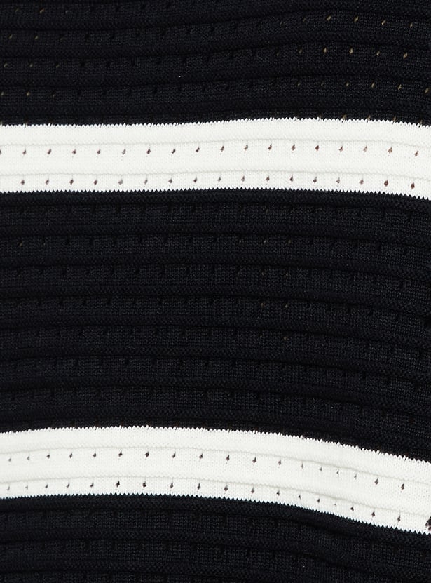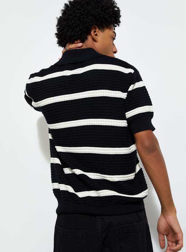 Level up your style game with this knit T-shirt. With its trendy Johnny collar and half sleeves, this piece brings the perfect mix of comfort and cool. The bold stripes add a pop of personality, while the soft knit fabric keeps you comfy all day long.