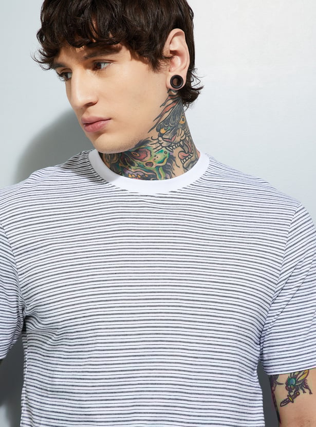 Keep it classic with this striped T-shirt, designed with a crew neck and half sleeves for all-day comfort. The timeless stripes add a touch of effortless style to your everyday look.