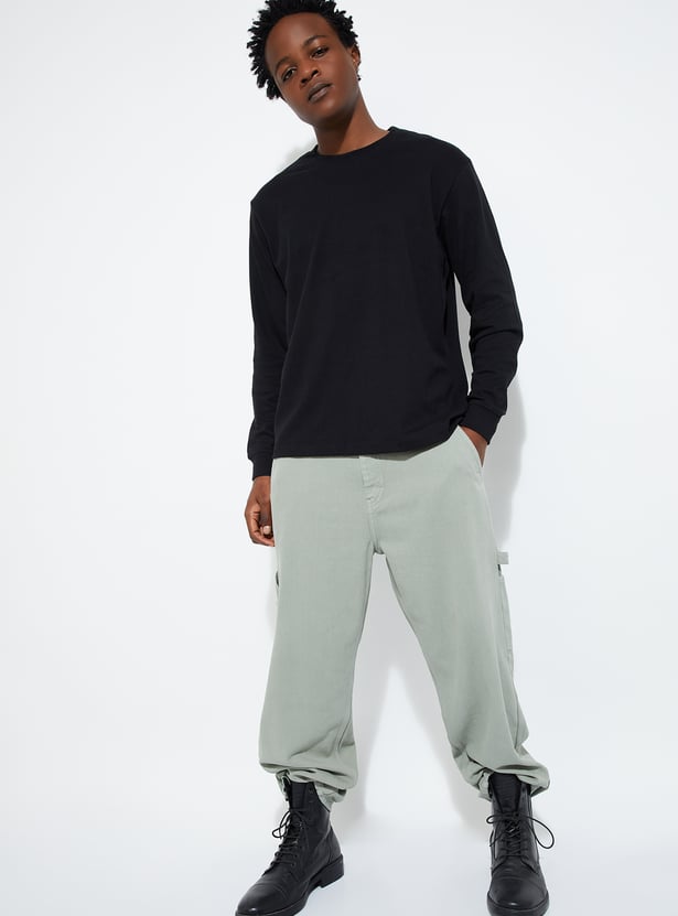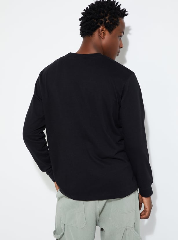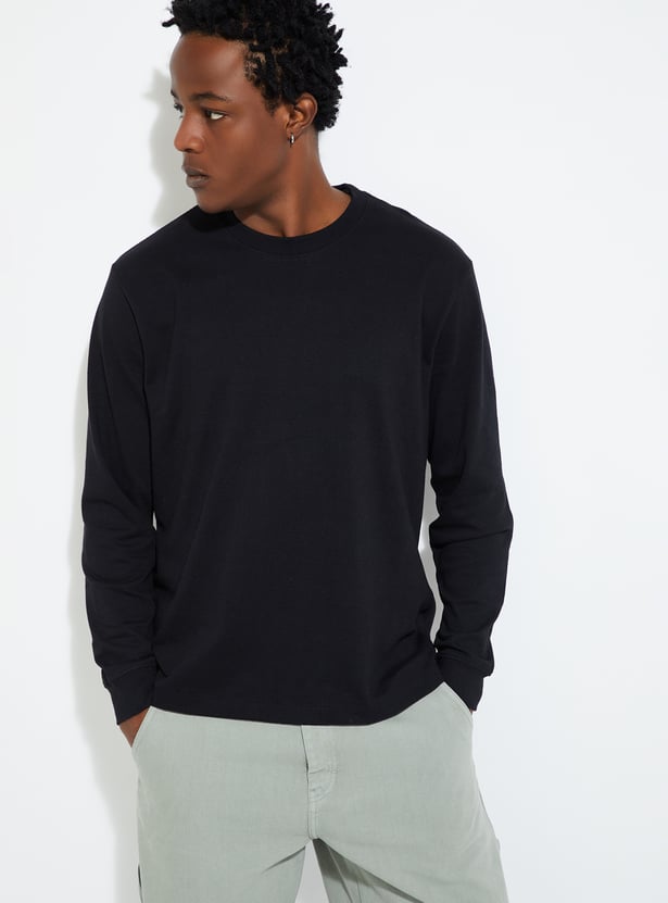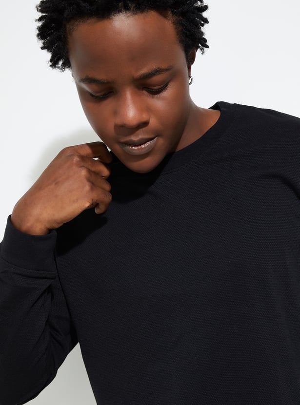 Indulge in the simplicity of this knit T-shirt, crafted from textured fabric that adds a touch of interest. With full sleeves and a crew neck, it offers a comfortable fit, making it perfect for everyday wear.