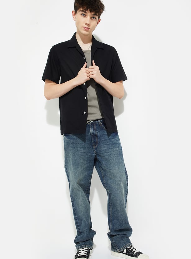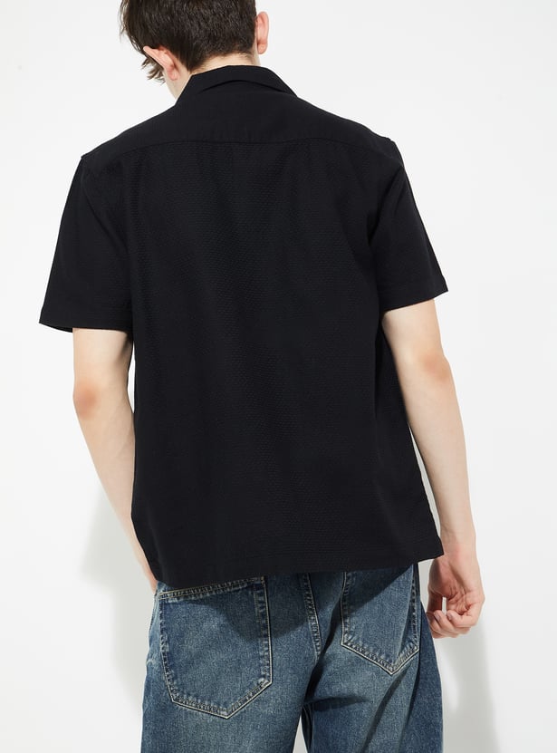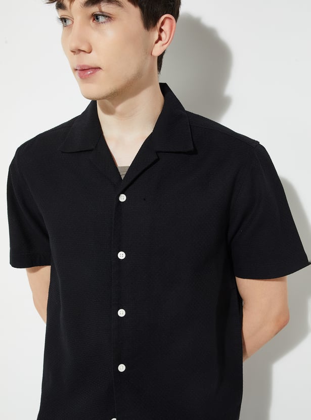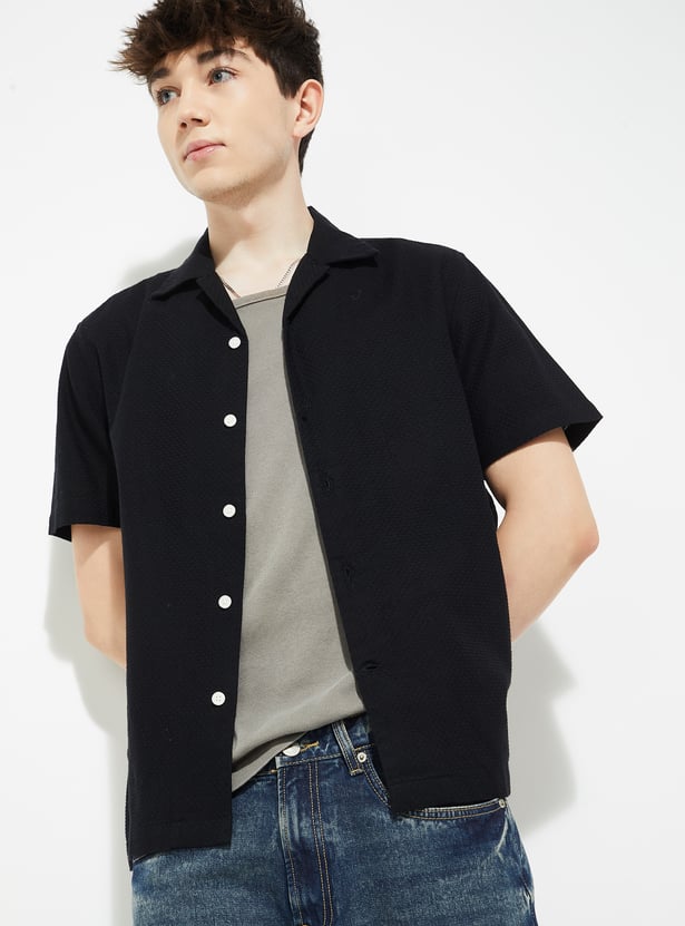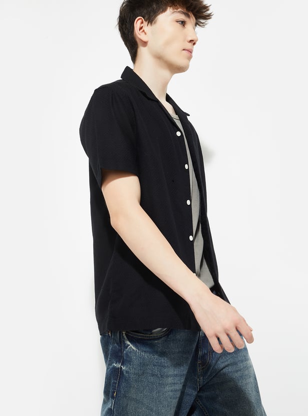 Refresh your casual wardrobe with this textured shirt designed for relaxed style. Featuring a resort collar, half sleeves, and a button placket for easy everyday wear.