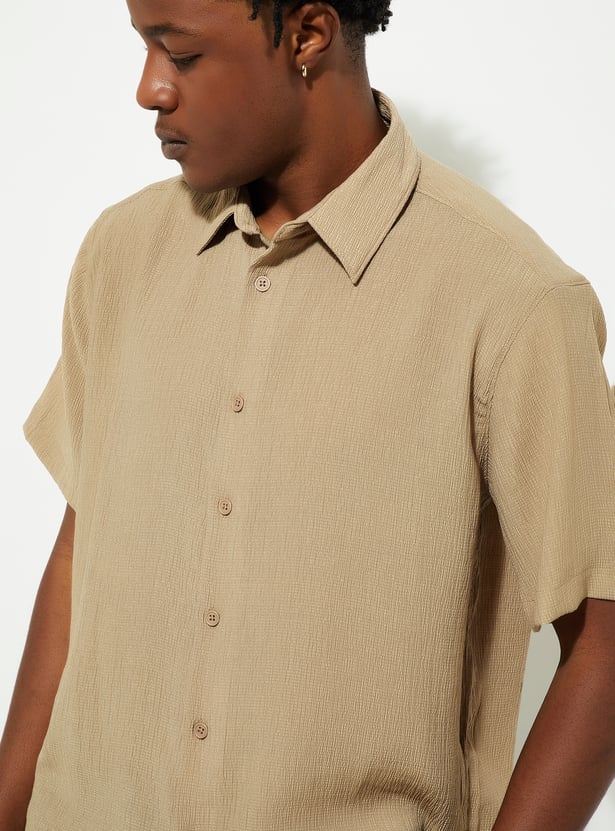 URB_N Men Textured Slim Fit Shirt