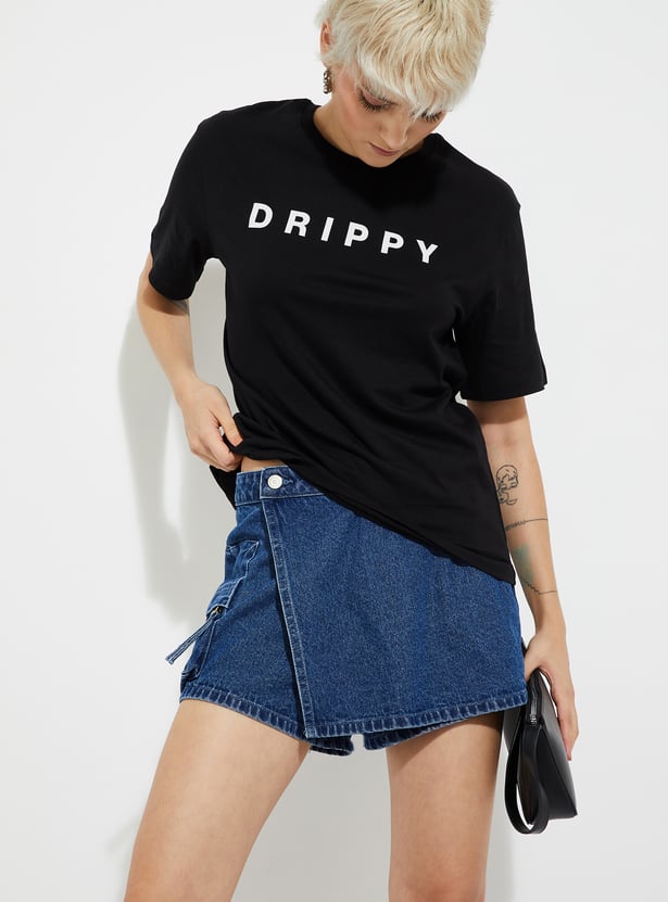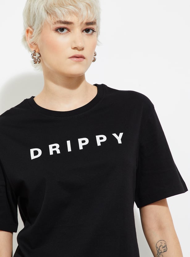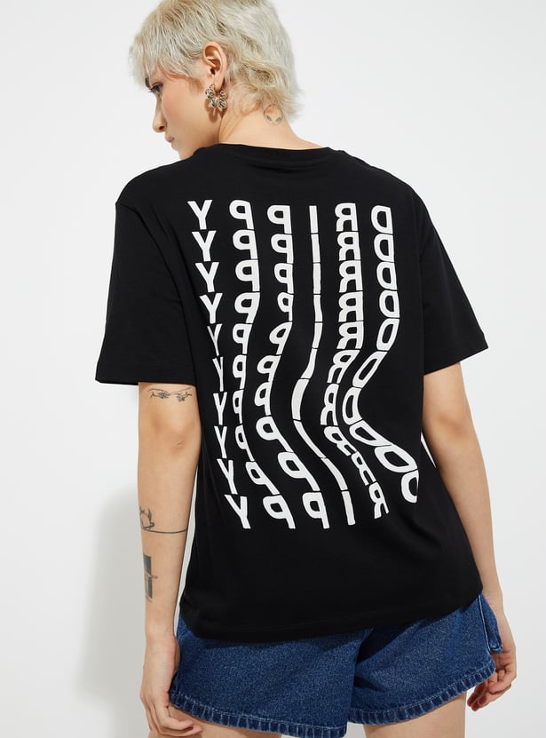 This back print relaxed fit T-shirt features a classic round neck and half sleeves, combining comfort with a bold graphic twist. Perfect for making a statement from every angle.