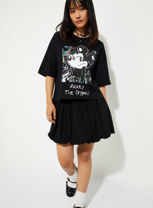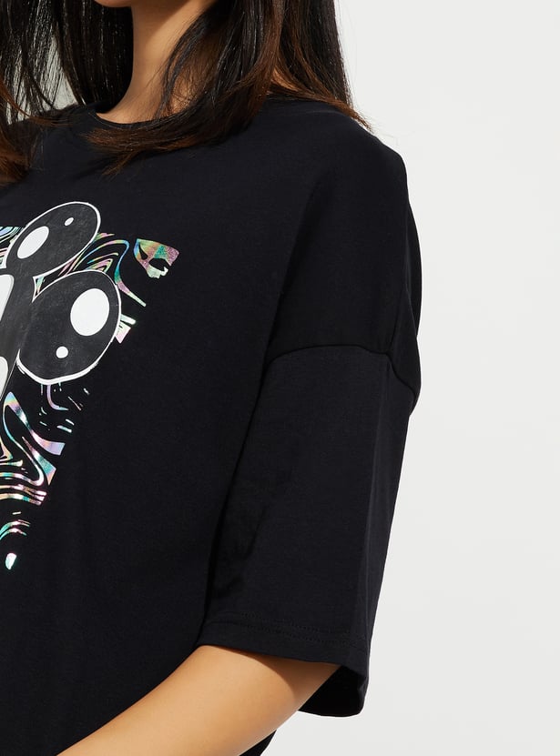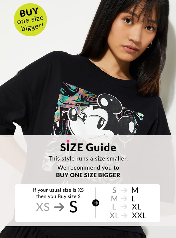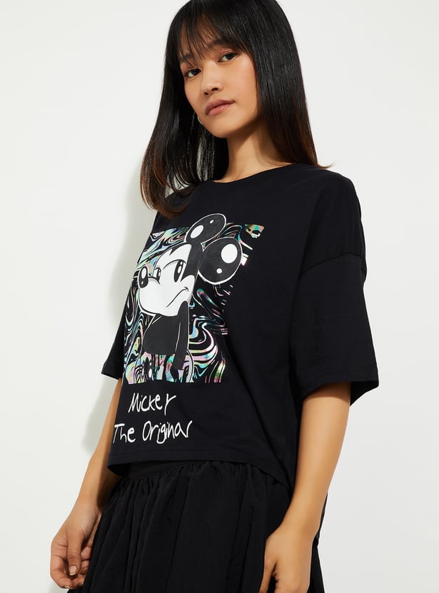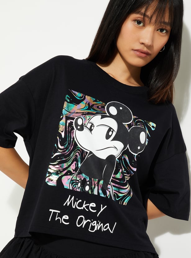 URB_N Women Boxy Fit Mickey Print T-shirt
