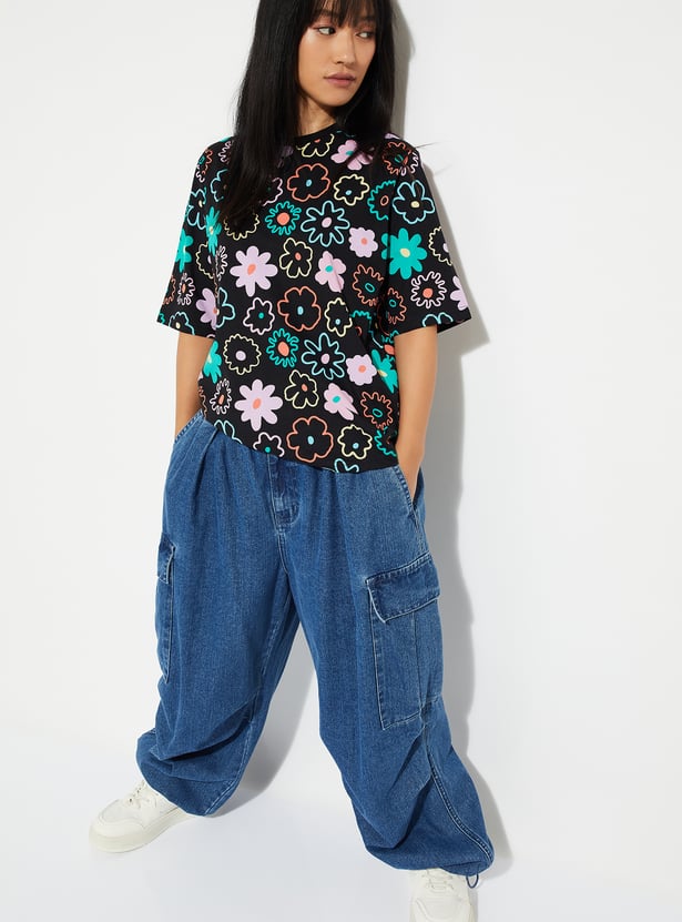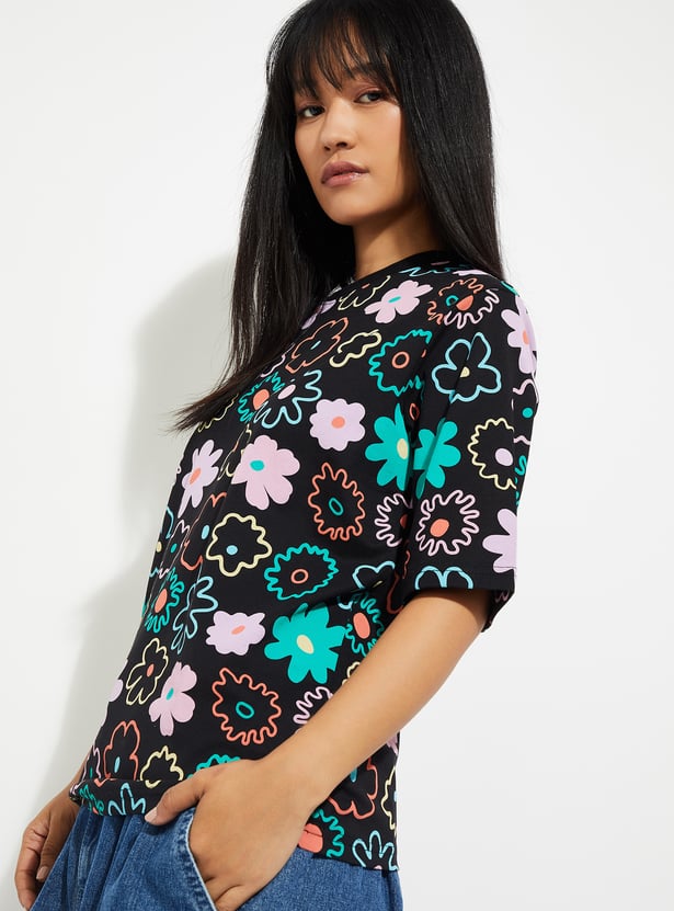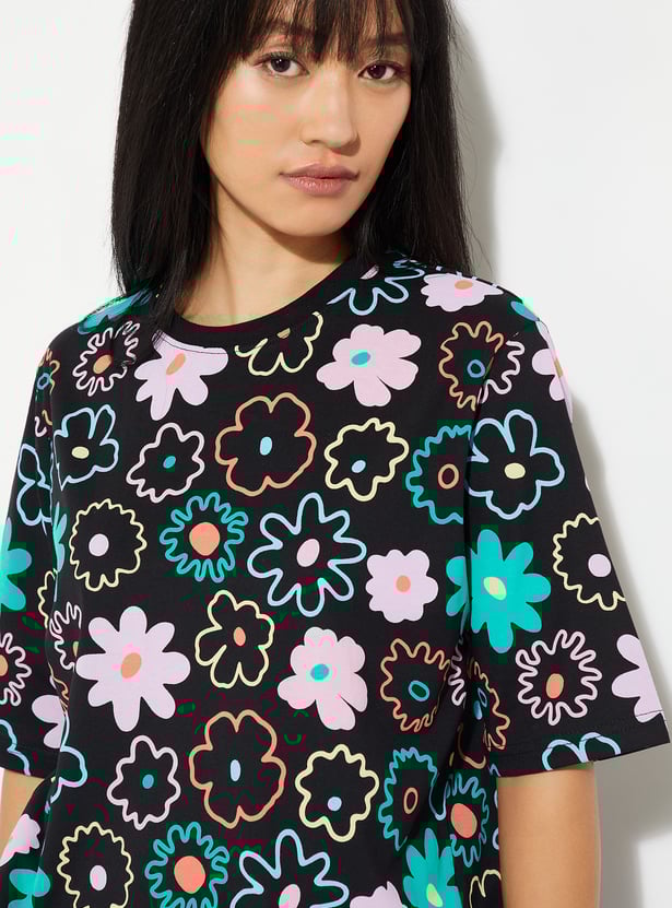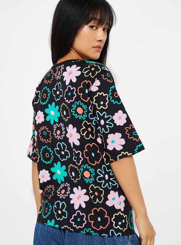 URB_N Women Floral Print Relaxed Fit T-shirt