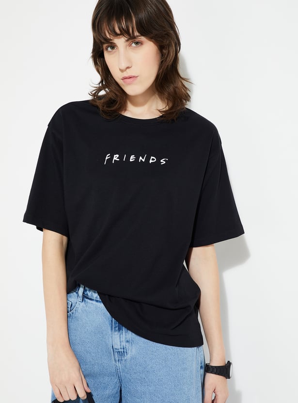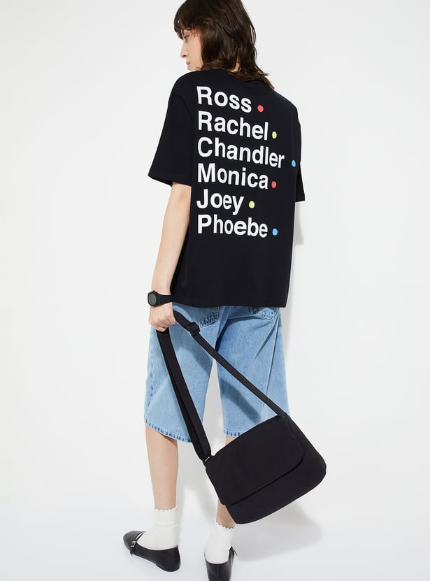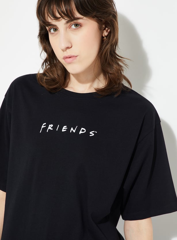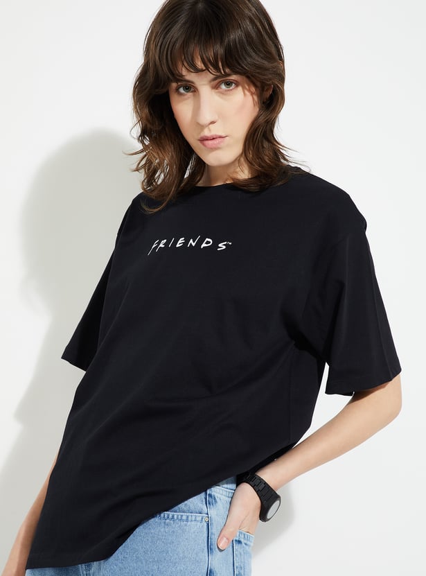 Show off your fandom in style with this Friends oversized fit T-shirt. Designed with a classic round neck and half sleeves, it offers a relaxed silhouette that blends comfort with an effortlessly cool vibe.
