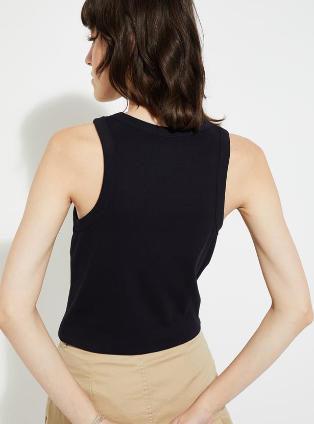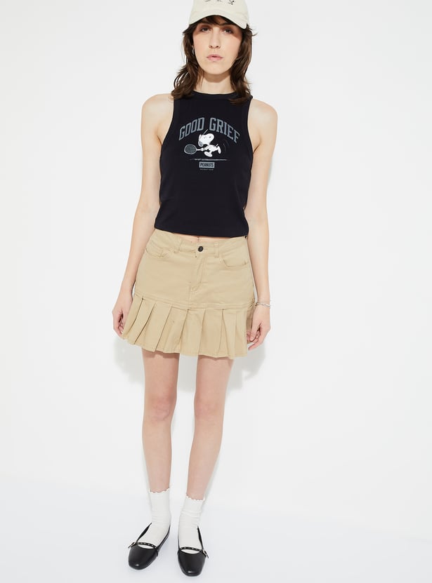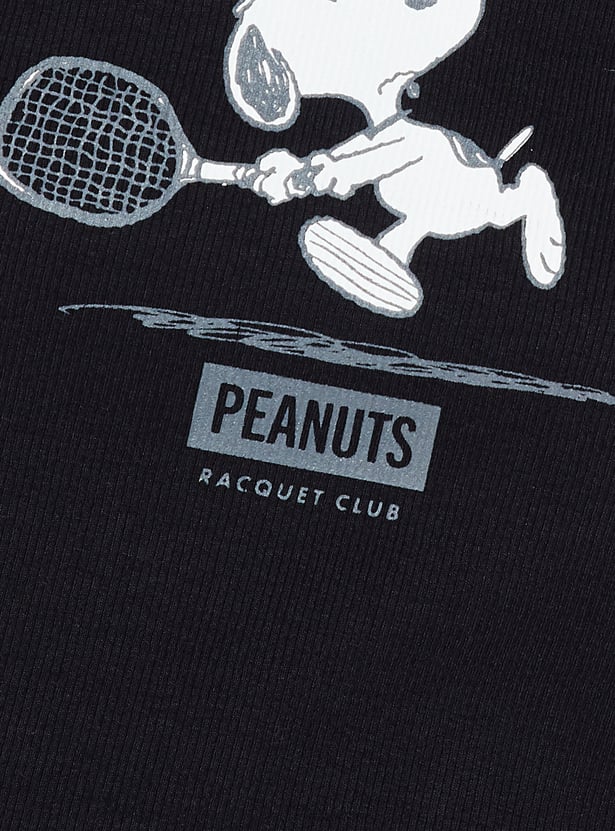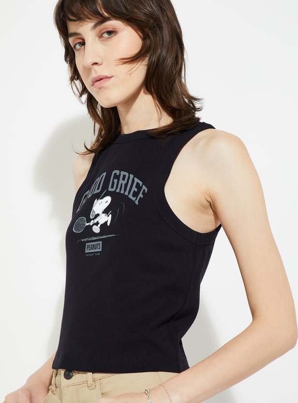 Add a playful touch to your casual wardrobe with this Peanuts embroidered tank top. Designed with a classic round neck and a sleeveless silhouette, it offers a comfortable and stylish option for warm days.
