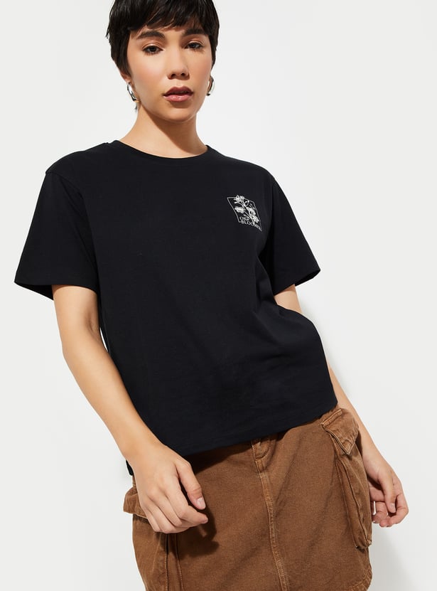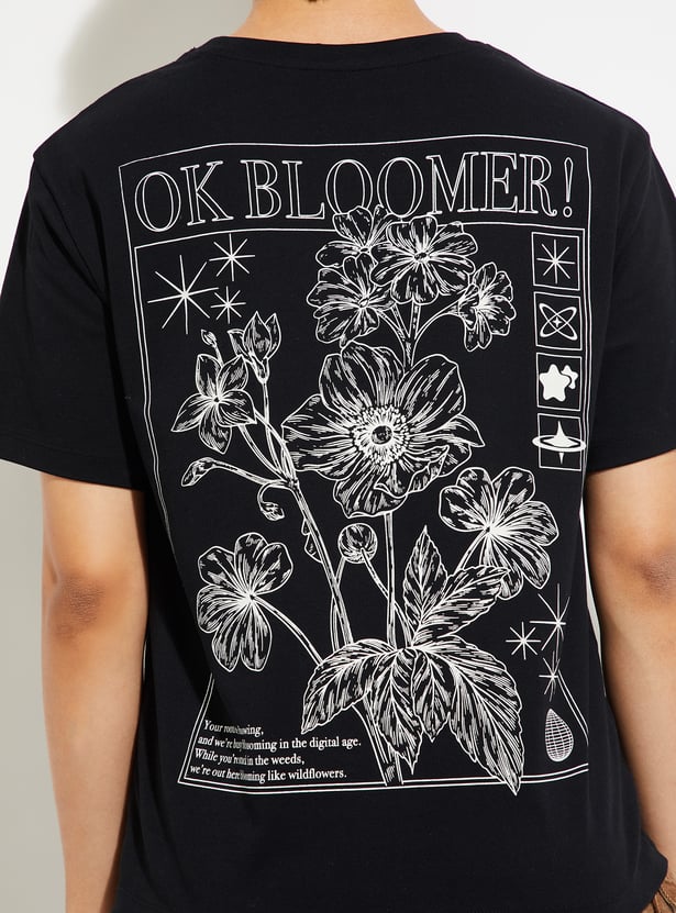 Level up your street style with this relaxed and effortlessly stylish T-shirt. Featuring half sleeves, a round neck, and striking back graphic prints, it offers roomy comfort and makes a wardrobe staple you'll reach for time and again.