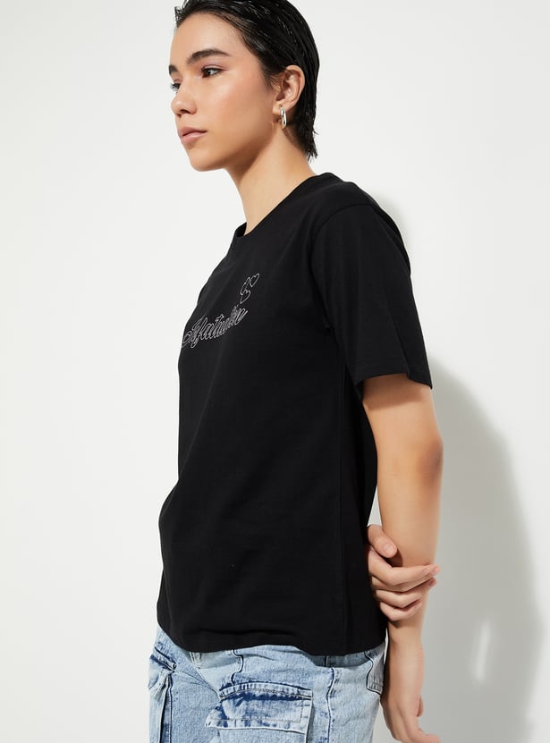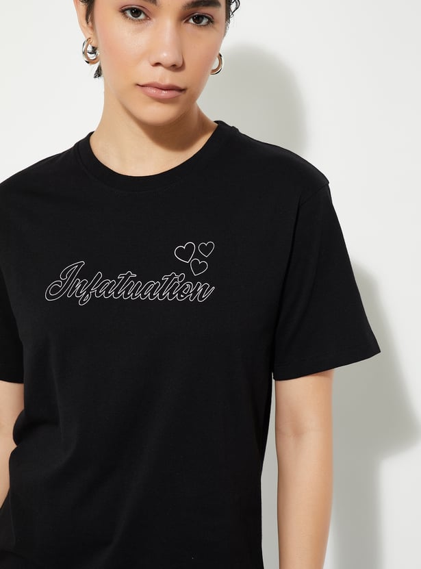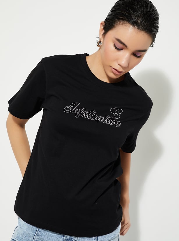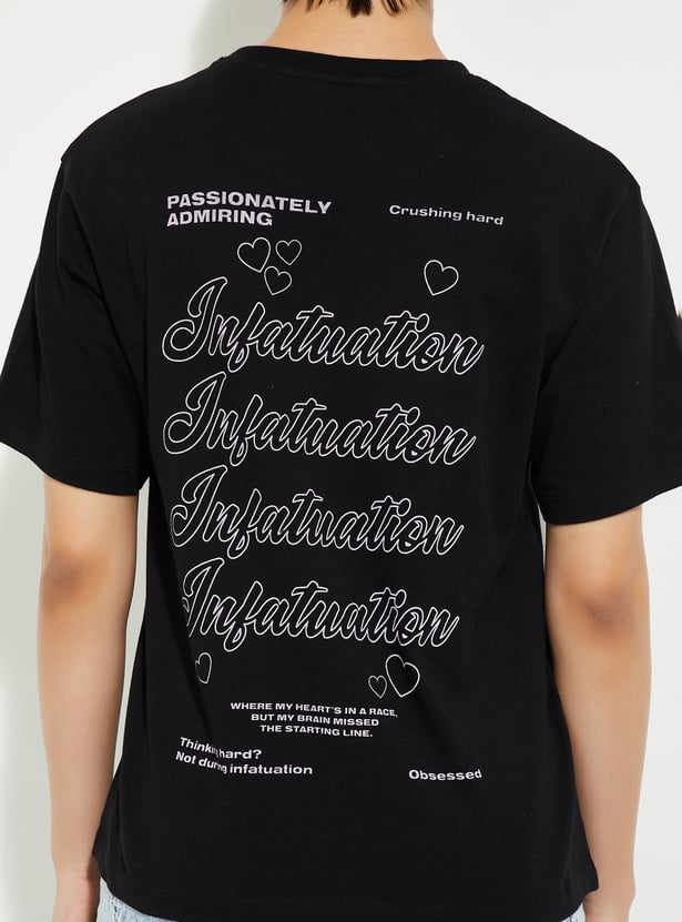 Your go-to for effortless, statement-making style, this T-shirt is as stylish as it is comfy. It features typographic prints on both the chest and back that blend classic design with a modern flair. The relaxed fit ensures a comfortable, easy-going silhouette, while the half sleeves and round neck offer timeless styling for everyday wear.
